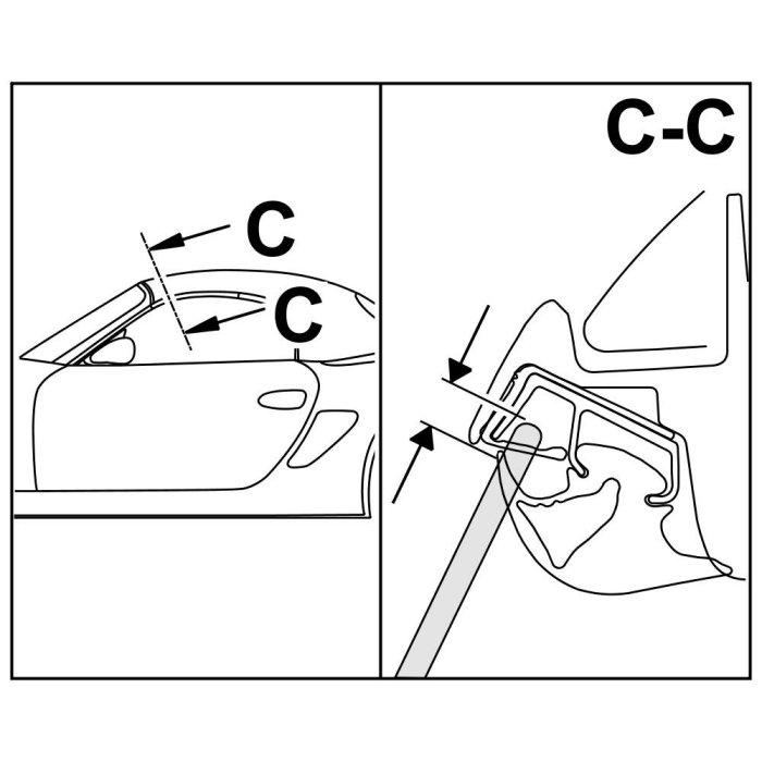 10.2. Use a wax marker to mark the door window glass along the roof frame seal.