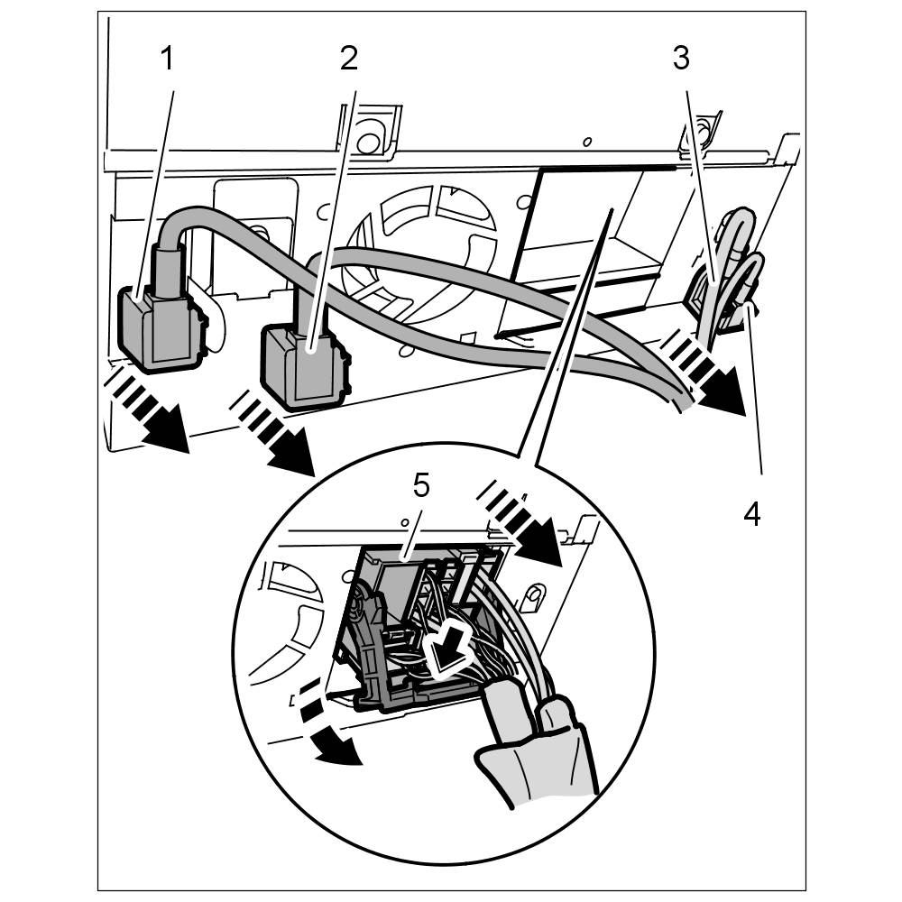 5. Press lock on antenna connectors -1, 2, 3, 4- and pull off antenna line.