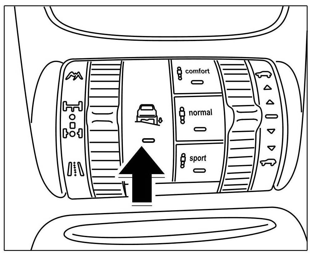 Tap the right-hand rocker switch on the center console in the appropriate direction until vehicle has reached normal level. The middle indicator light next to the rocker switch is permanently on. If a further indicator light should come on, a different level is adjusted.