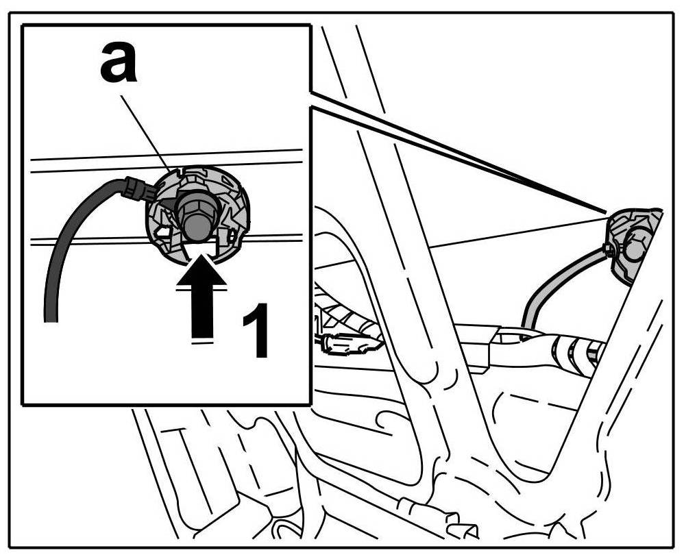 13. Screw down ground strap together with twist lock -a- to ground pin -arrow 1-.