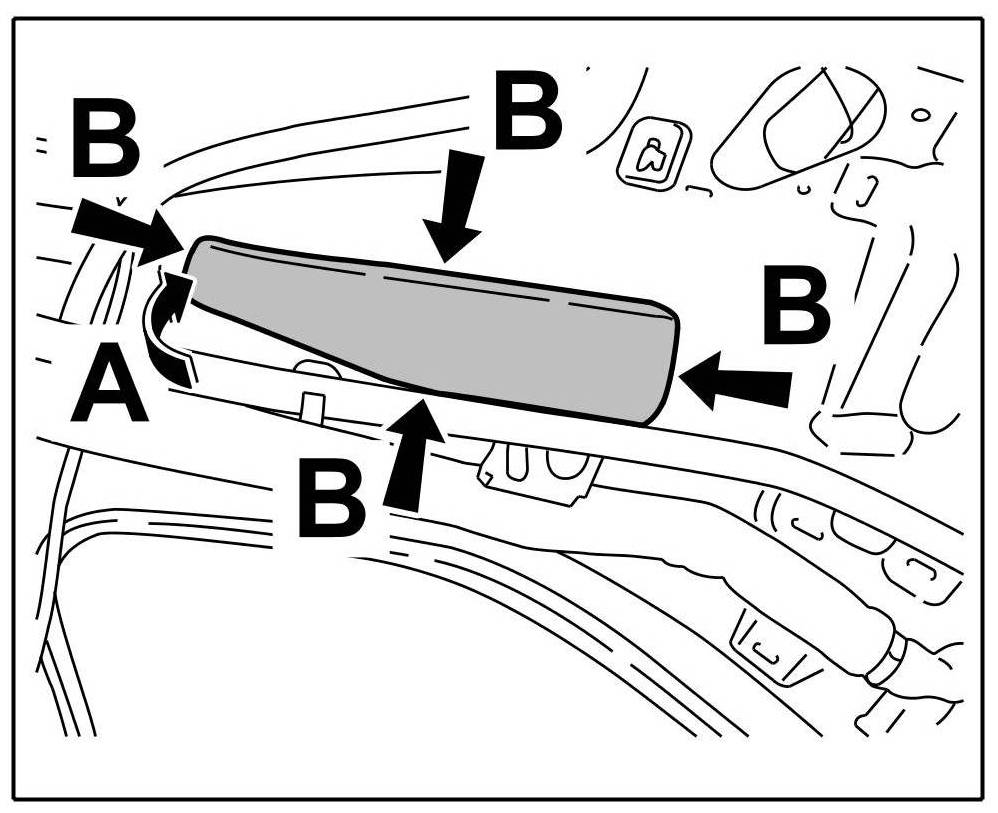 4. Press rubber sleeve into window frame until it is felt to engage -Arrow B-.