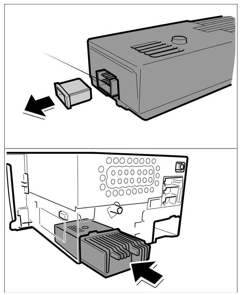 1. If you are installing a new voice module, detach the cap for the electric plug connection and carefully slide the voice module as far as it will go into the PCM.