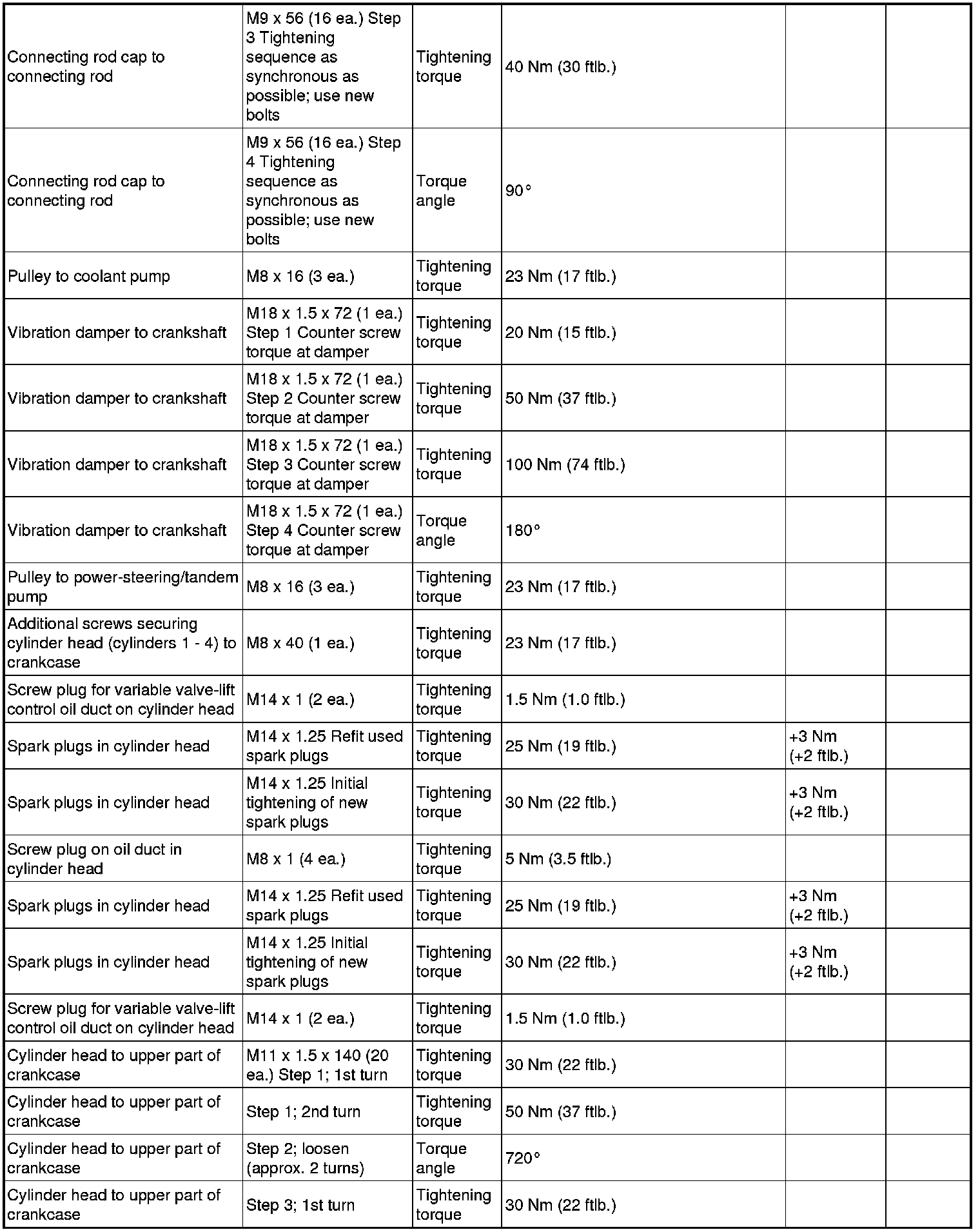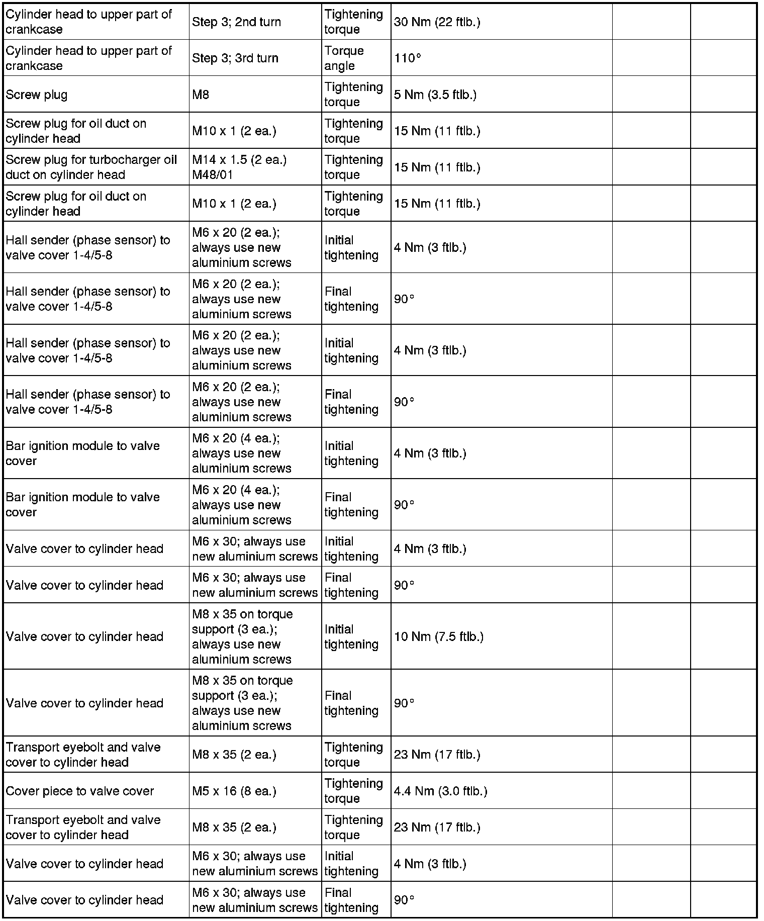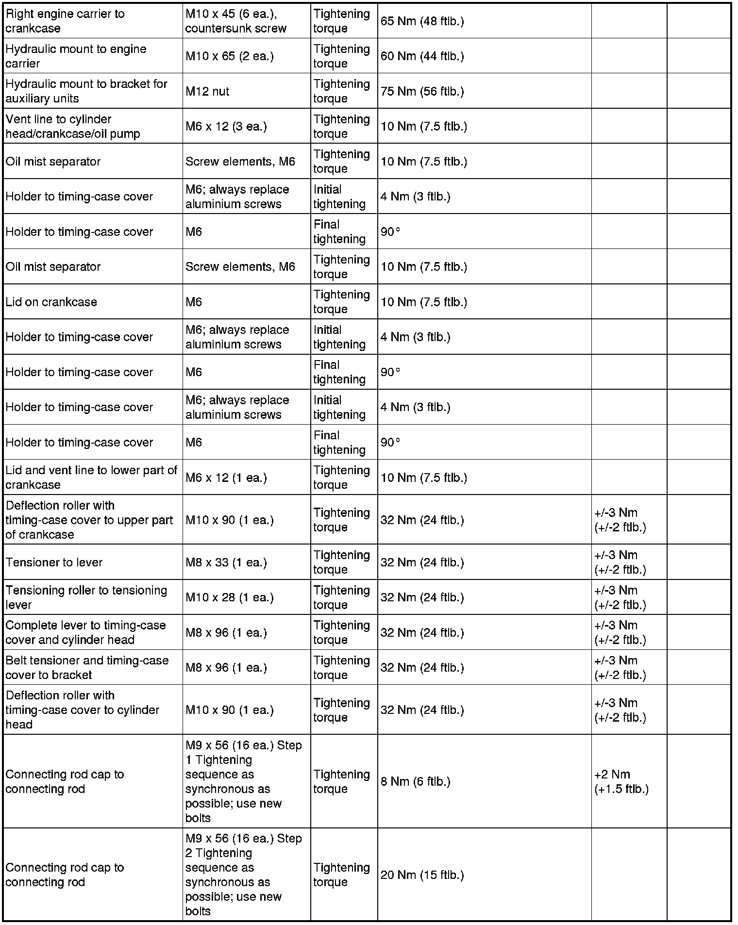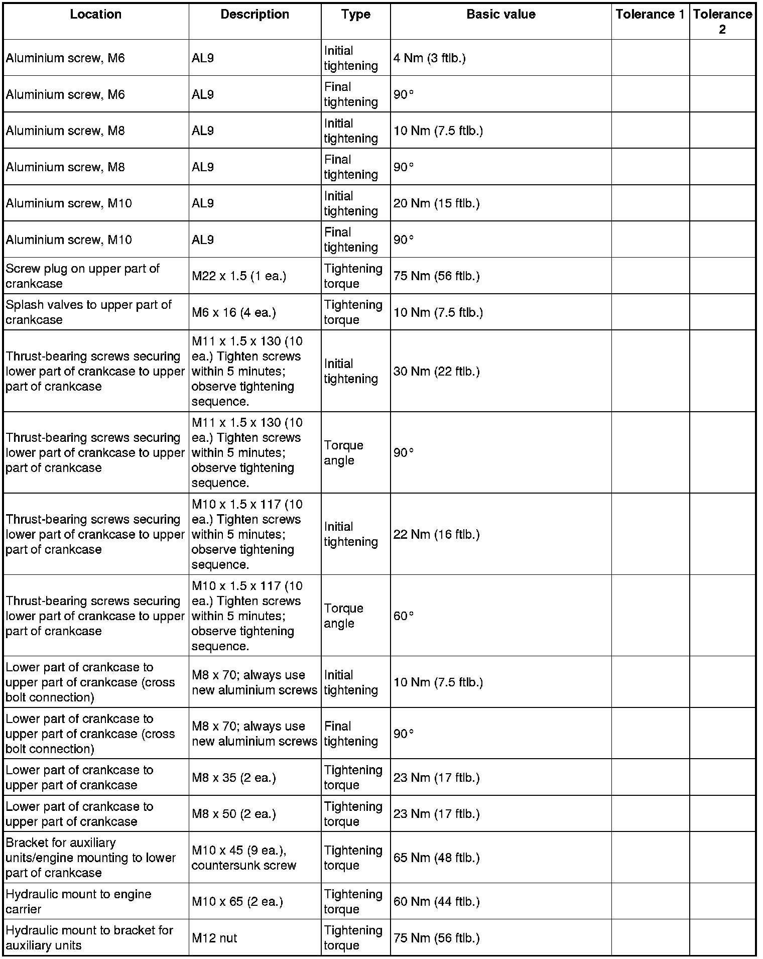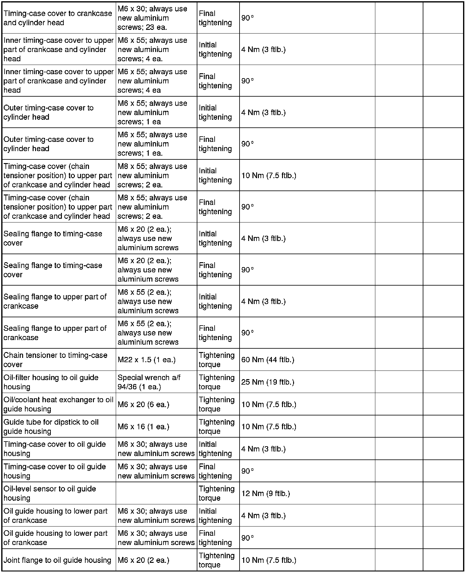 - The tightening steps in the tightening sequences relate to tightening screws uniformly, i.e. all affected screws must first be tightened uniformly to the first torque value, then all screws are tightened one stage further, and so on.