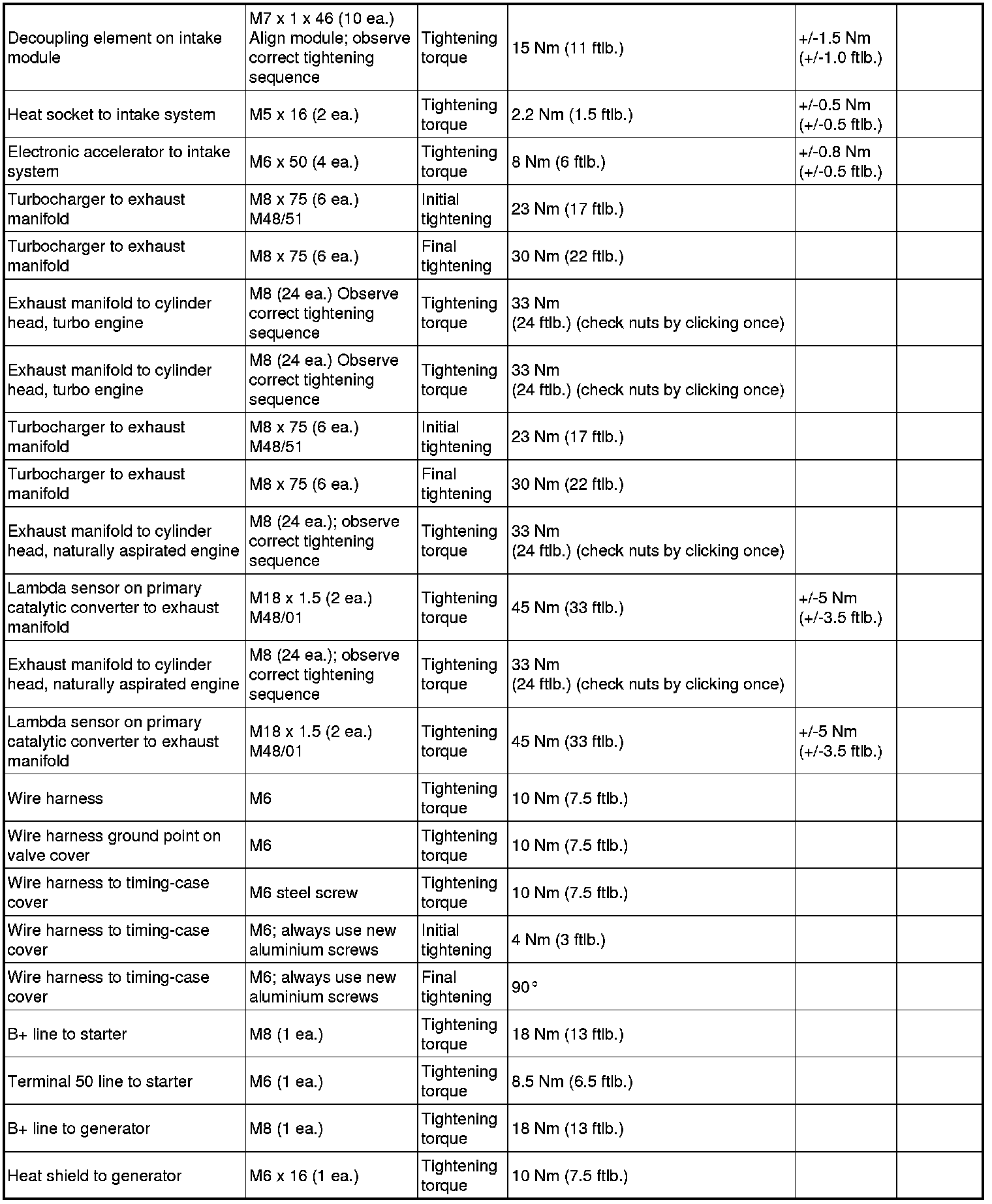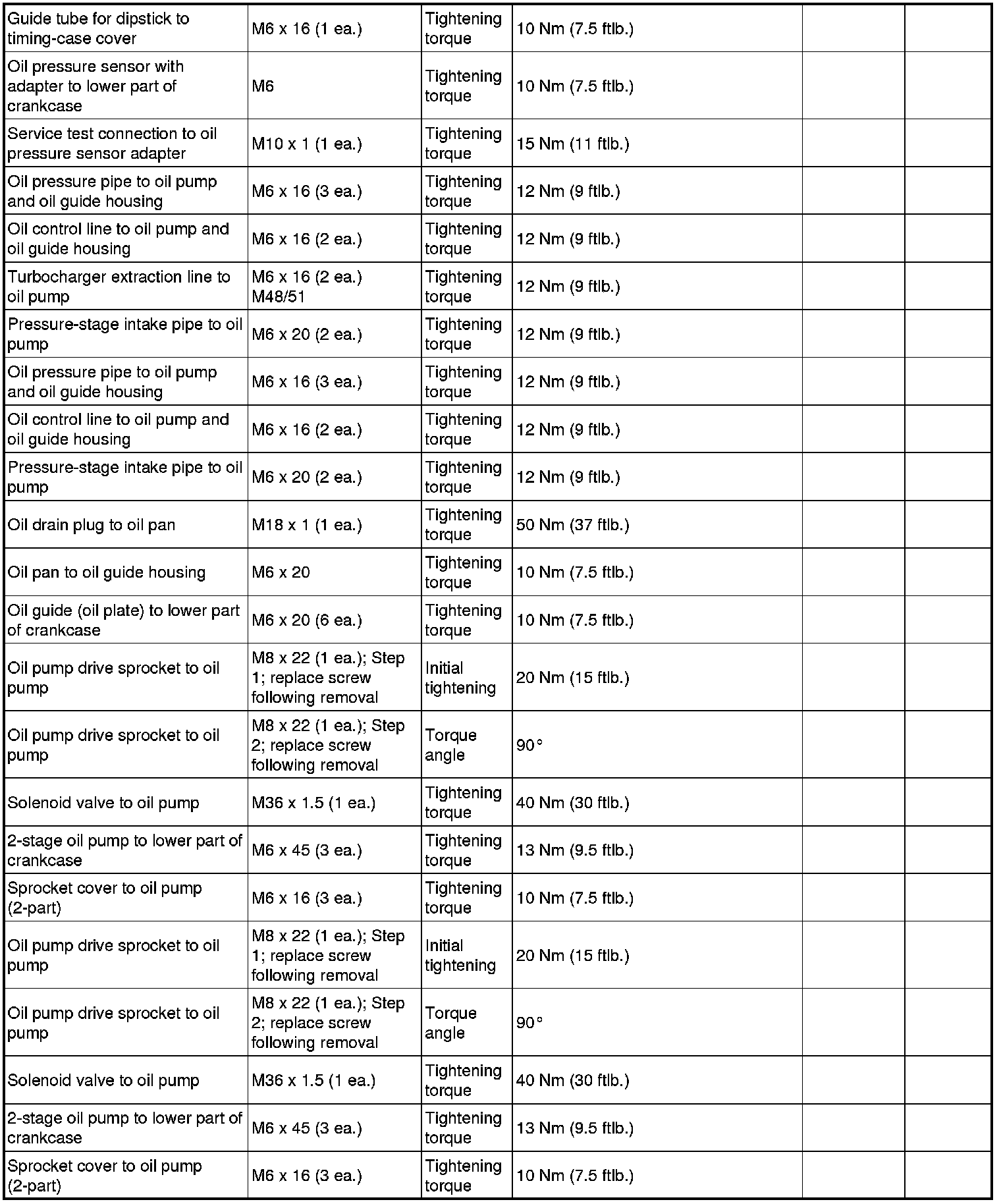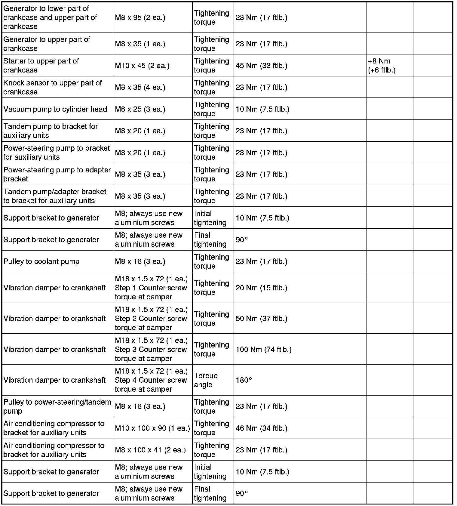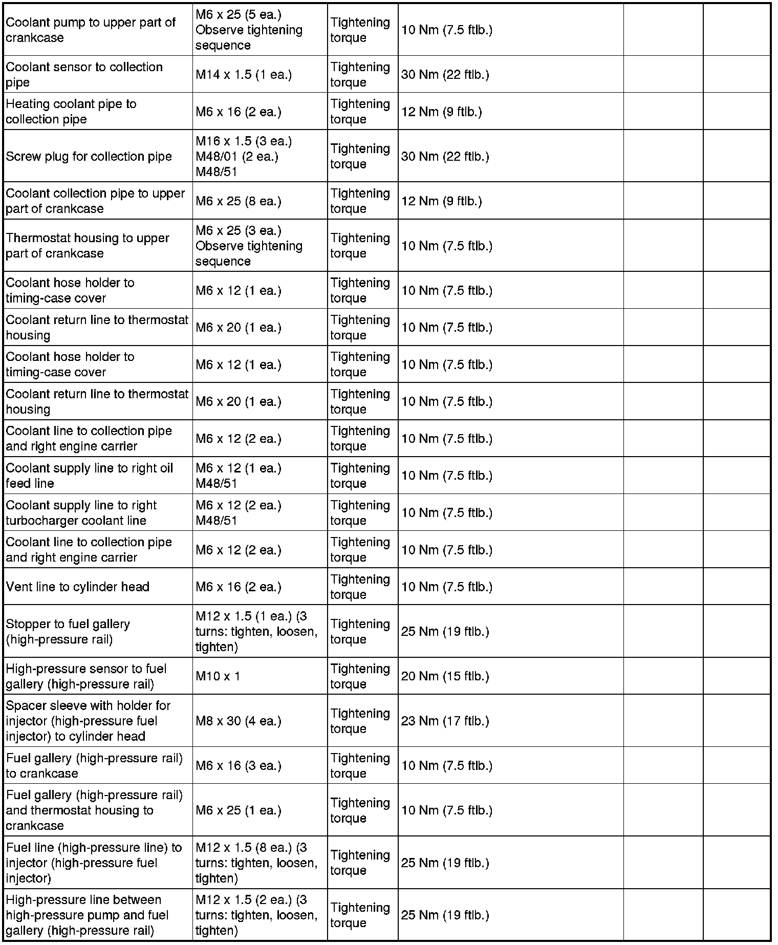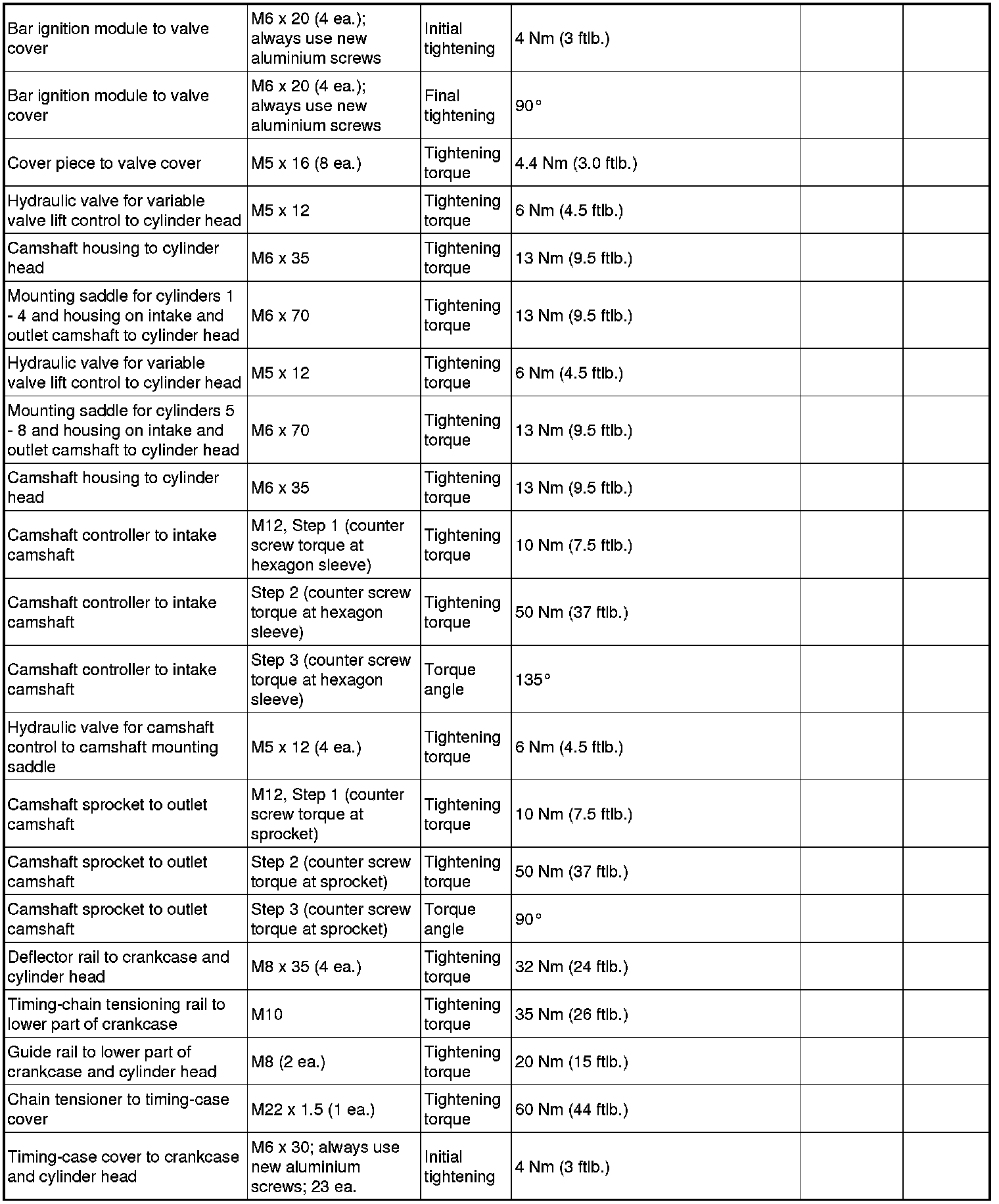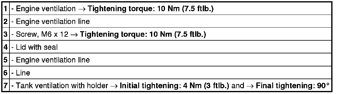 - The tightening steps in the tightening sequences relate to tightening screws uniformly, i.e. all affected screws must first be tightened uniformly to the first torque value, then all screws are tightened one stage further, and so on.