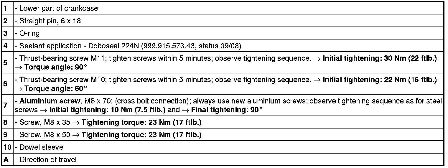 Tightening sequence for securing lower part of crankcase to upper part of crankcase (cross bolt connection)
