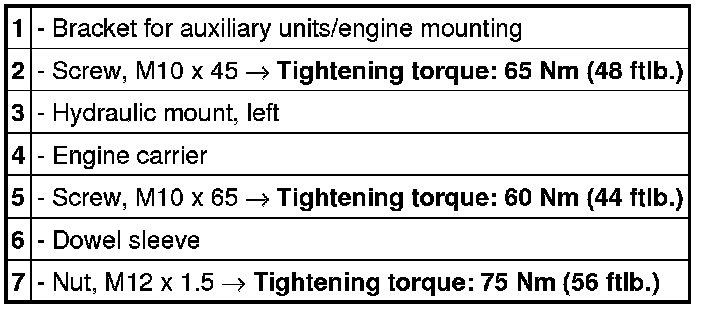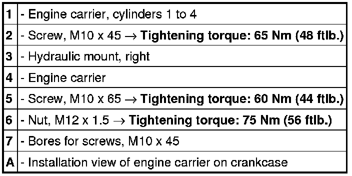 Always read the information concerning modified tightening specifications and component changes relating to repairs provided for specific engine numbers in the Information section => 1001IN IMPORTANT component changes for V8 engines as of October 2008.