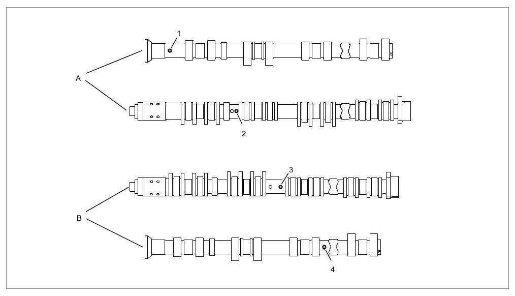 Camshafts, cylinder bank 1 to 4