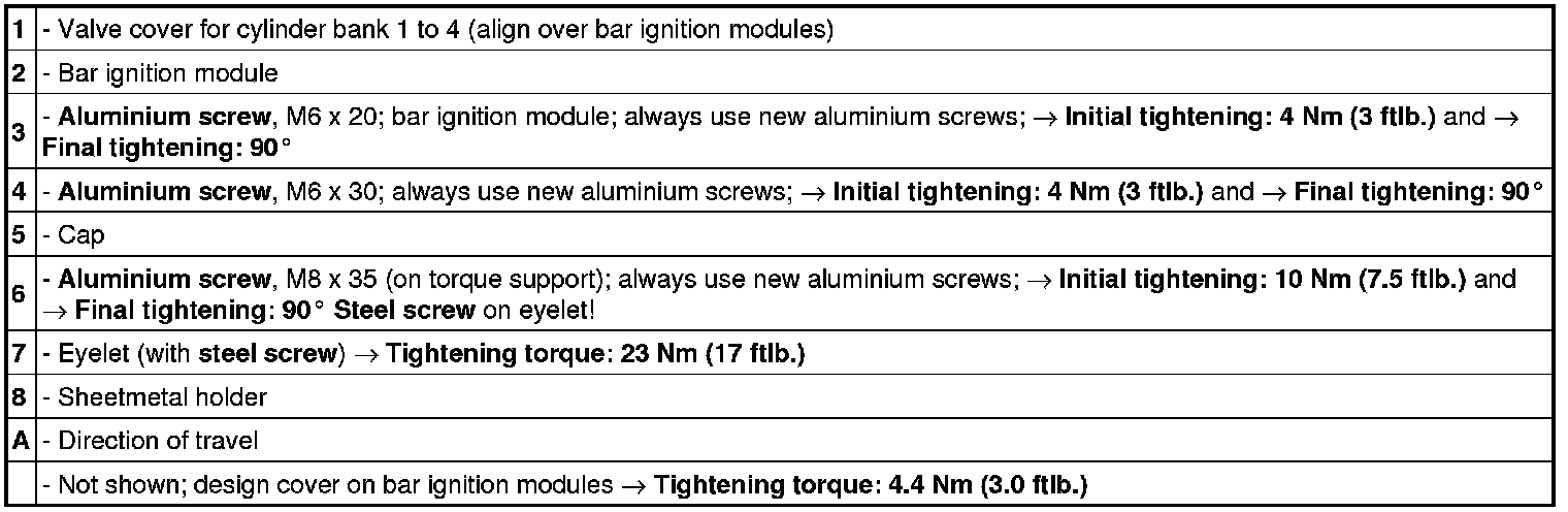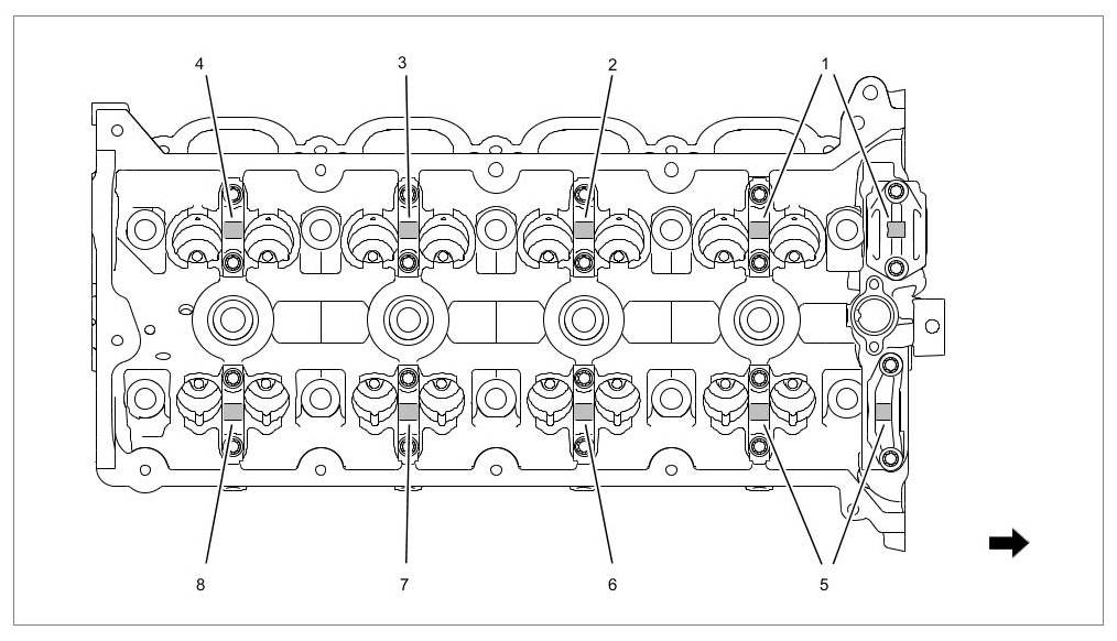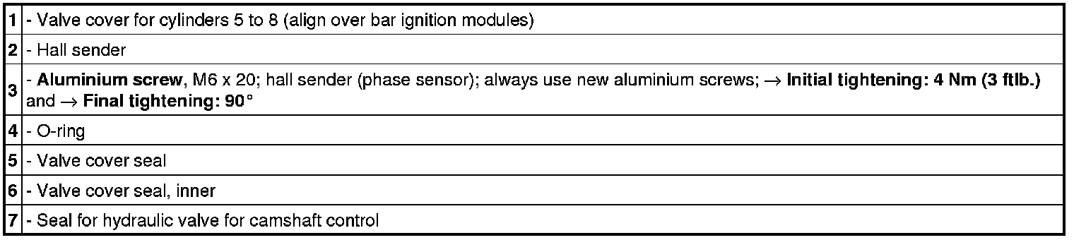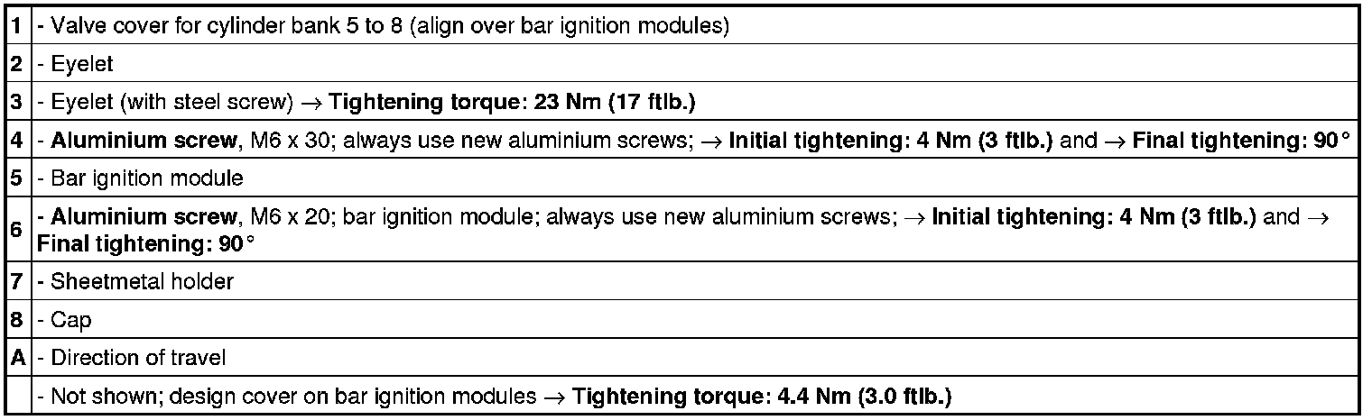 Tightening sequence for valve cover for cylinders 5 to 8