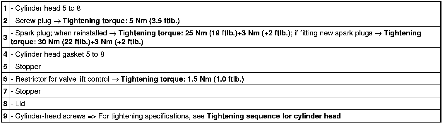 Cylinder head 5 to 8
