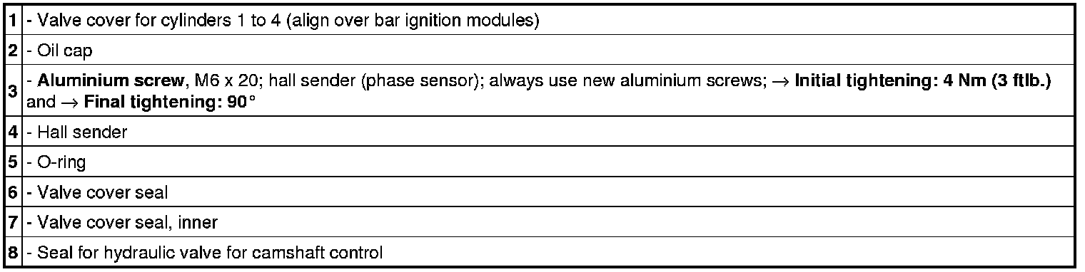 Tightening sequence for valve cover for cylinders 1 to 4