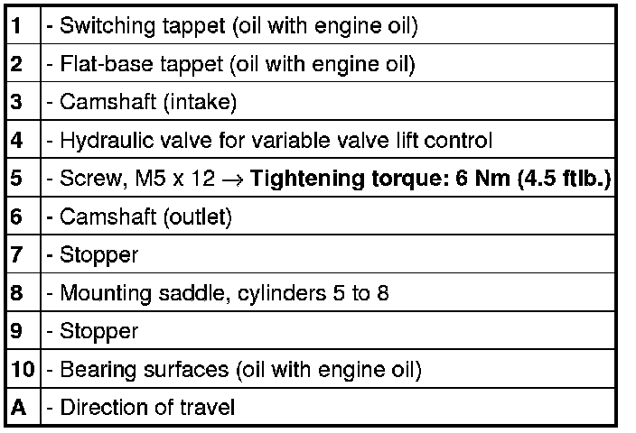 Camshaft mount, cylinders 5 to 8