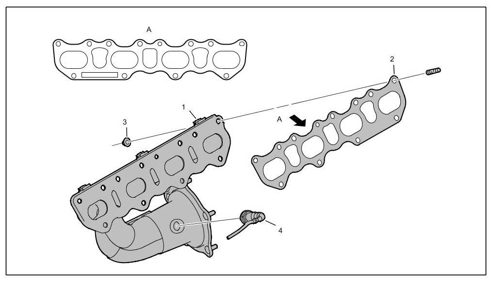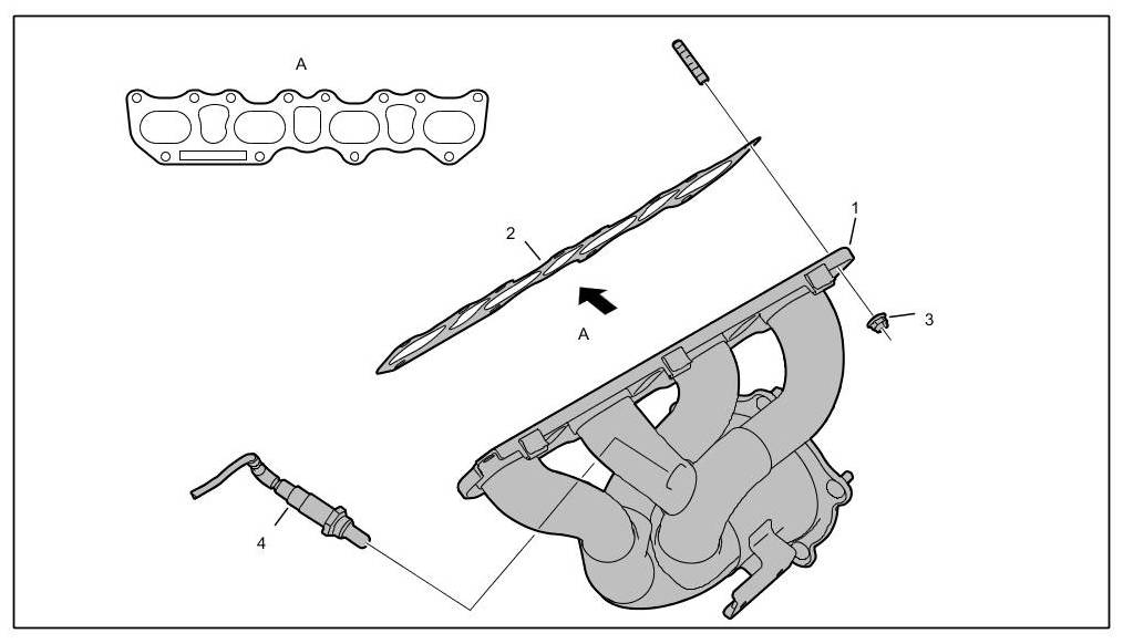 Exhaust manifold on naturally aspirated engine M48/01, cylinders 1 to 4