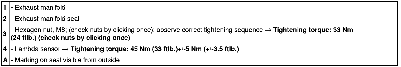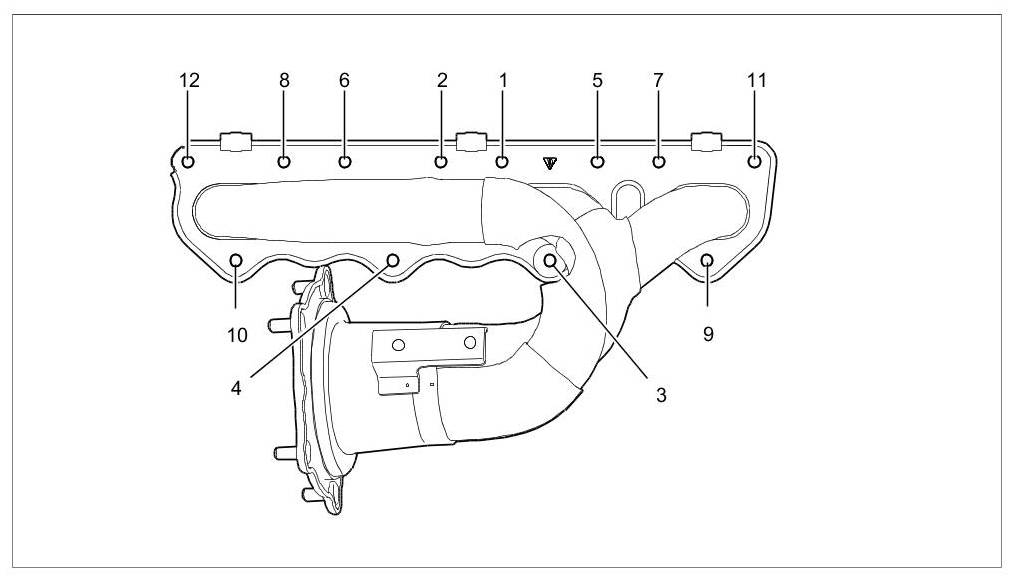 Tightening sequence for exhaust manifold on naturally aspirated engine M48/01, cylinders 1 to 4
