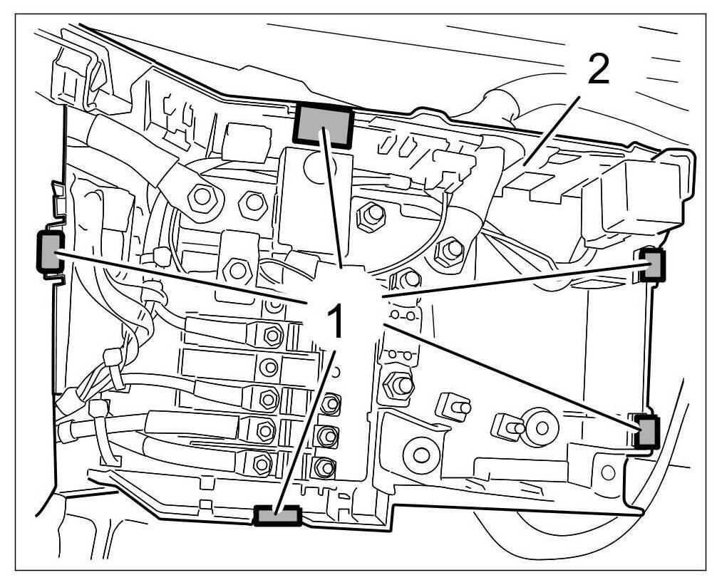 In the event of a complaint, felt strips must be affixed to the mounting plate and caps of the central electrical system power distributor to remedy the situation on vehicles manufactured before the date of introduction February 2006.