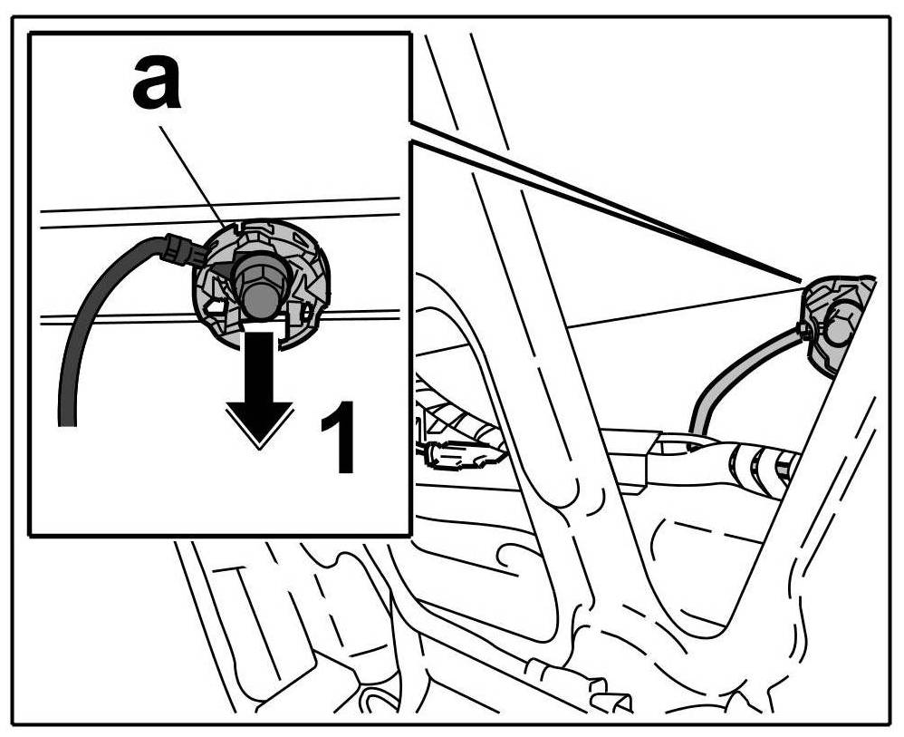 1. Unscrew fastening nut -arrow 1- and remove ground strap together with twist lock -a-.