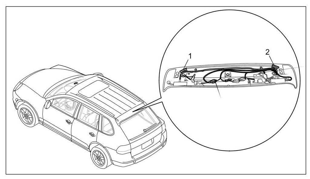 6. Remove the rear spoiler. -> 665819 Removing and installing rear spoiler - "Removing" section 665819 Removing and installing rear spoiler (Aerokit)