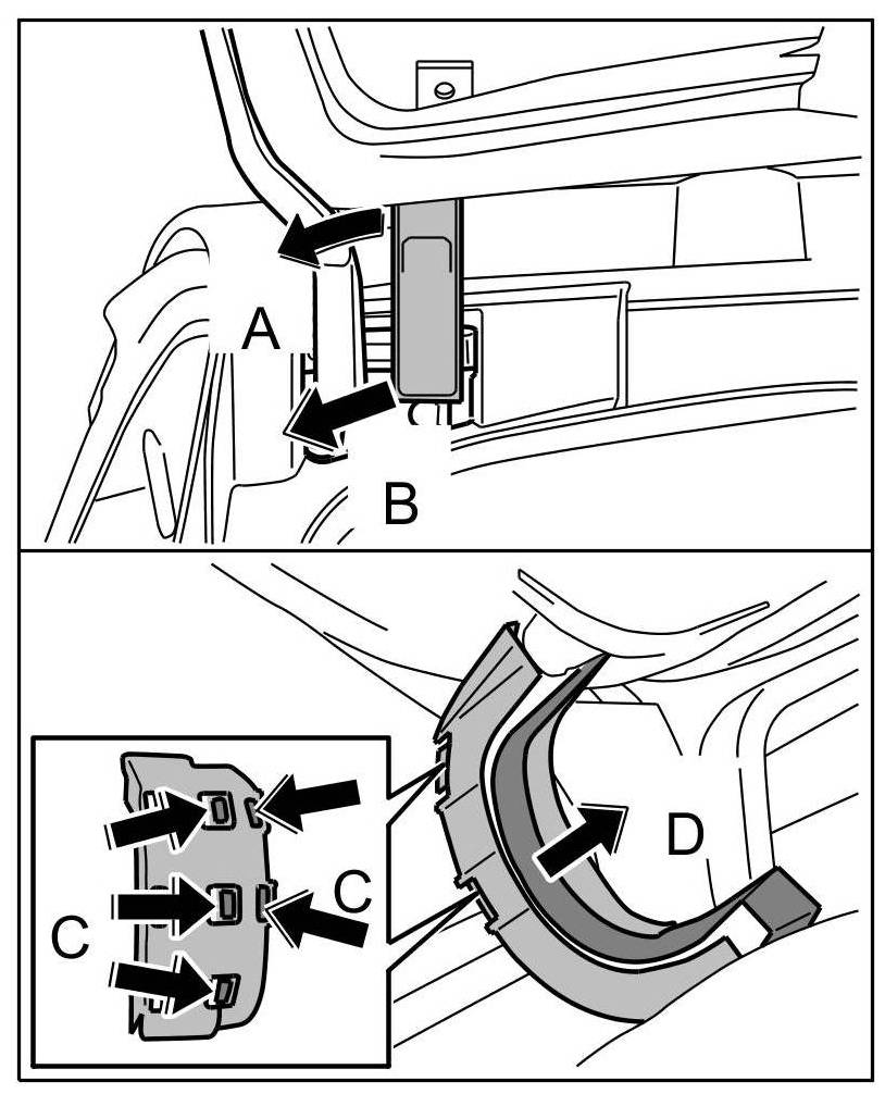 2. Remove lining for rear lid. -> 708719 Removing and installing rear lid lining - "Removing" section 708719 Removing and Installing Lining For Rear Lid