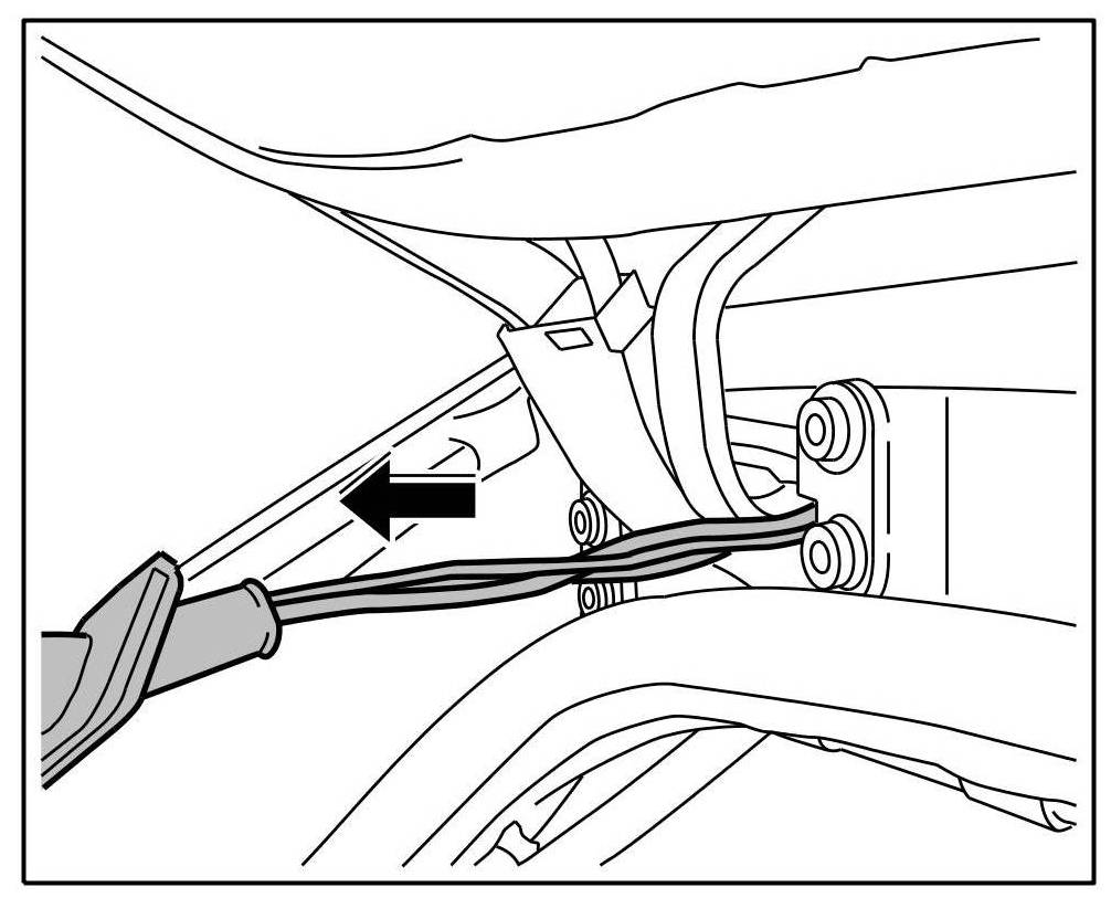 18. Remove complete wire harness on hinge to the rear -arrow-.