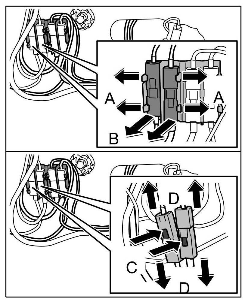 8. Release plug connections -arrow C- and disconnect -arrows D-.