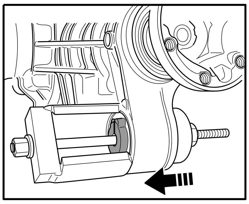 2. Position special tool assembly fixture 9716 a/b on rubber mounting => Removal on drive side.