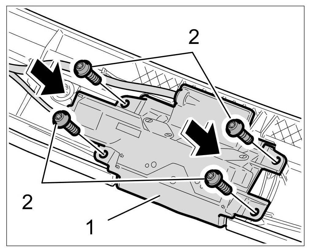 4. Tighten fastening screws -2- to the specified tightening torque. => Tightening torque: 1.2 Nm (1.0 ftlb.)