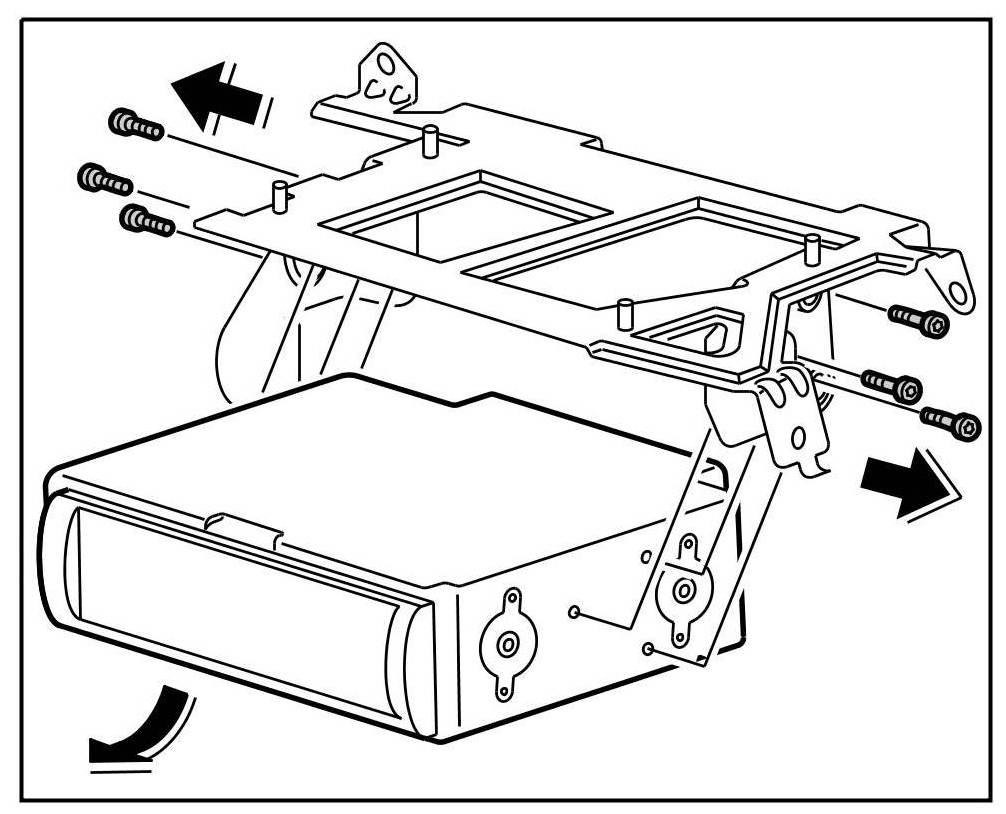 1. Unscrew the four fastening screws and pull out the carrier with CD changer & amplifier.