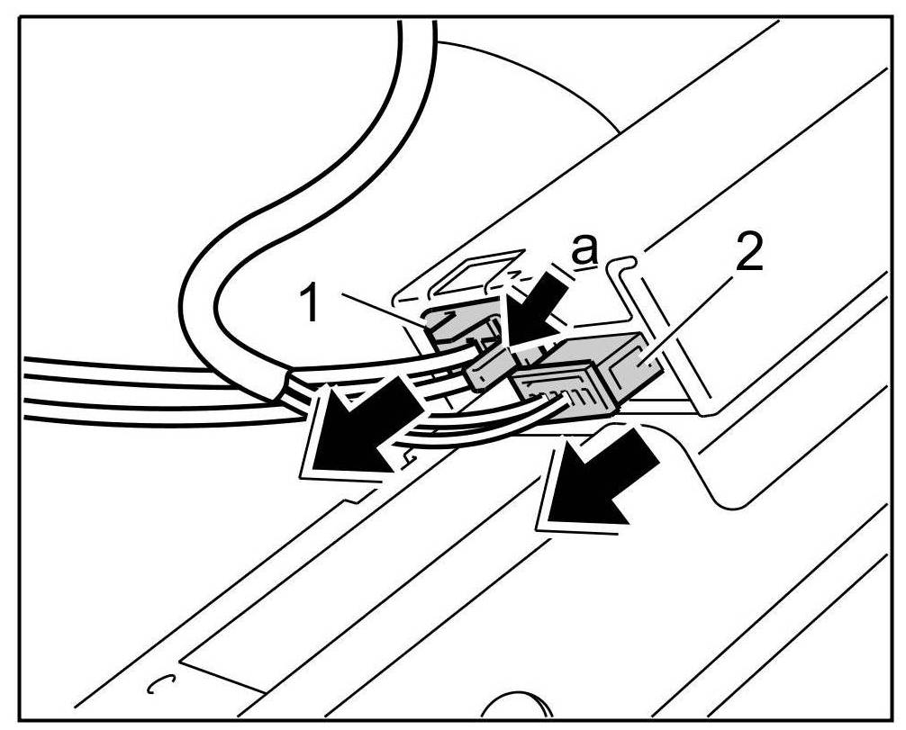 3. Actuate detent -Arrow 1- -Arrow a- and disconnect plug.