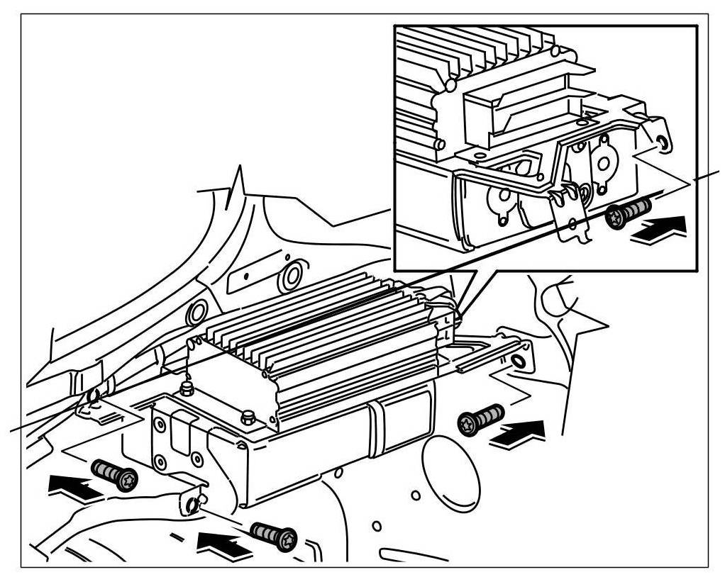 2. Screw down the carrier with CD changer & amplifier. => Tightening torque: 6.5 ftlb.