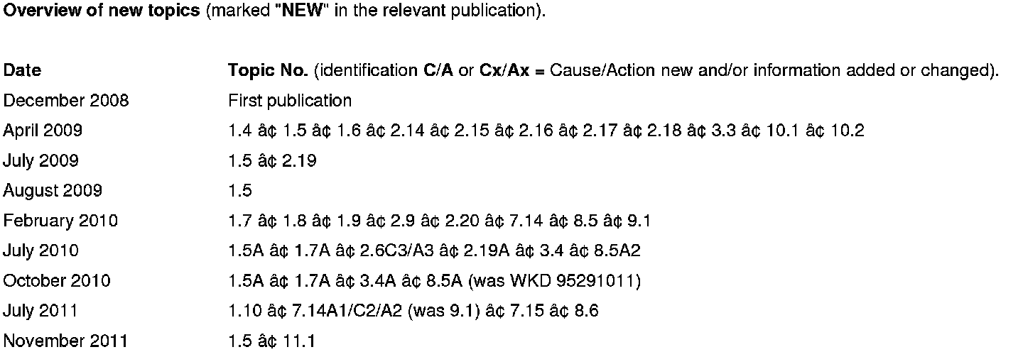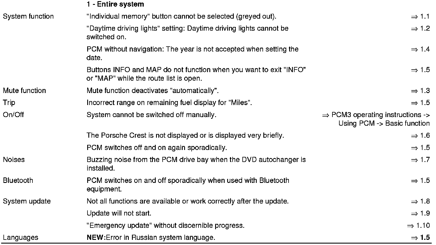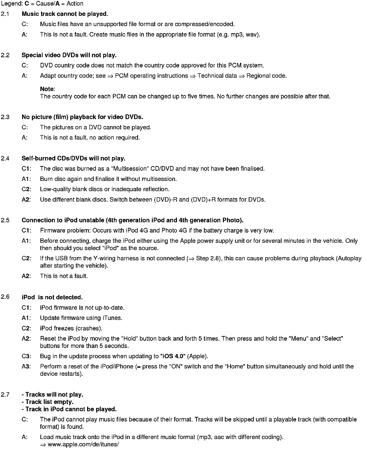 The list is sorted according to the system components and possible complaints. This is not a complete list of defects.