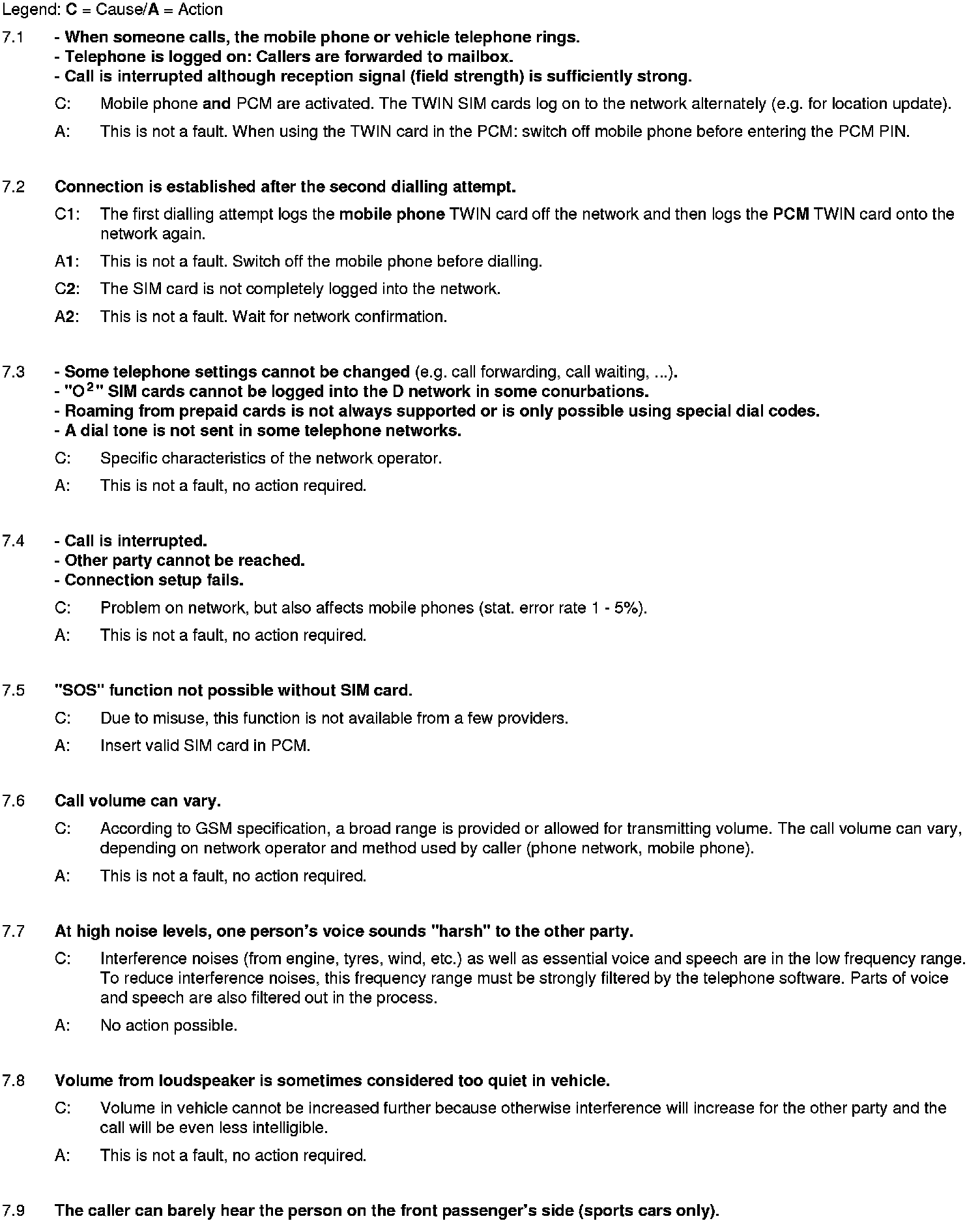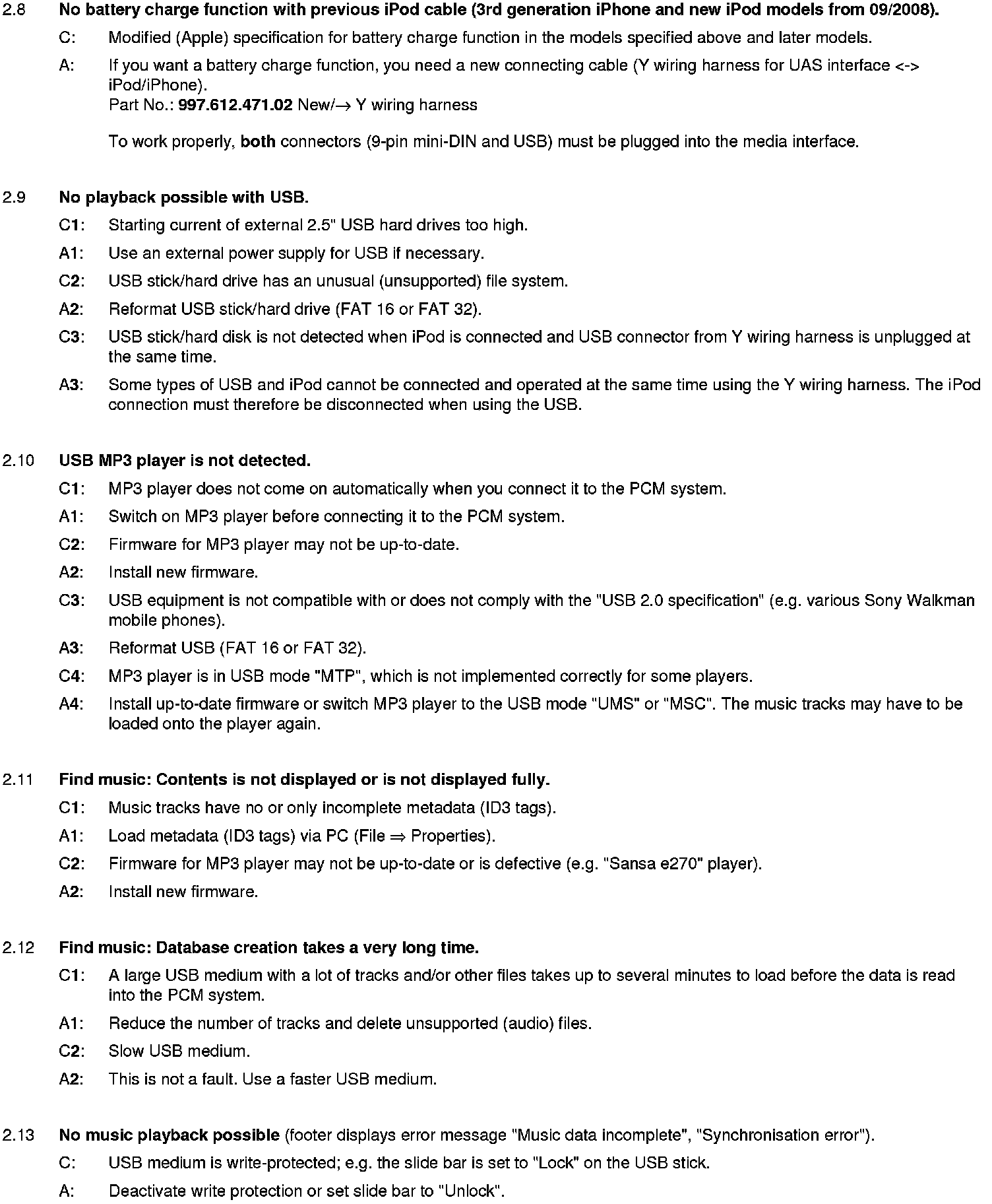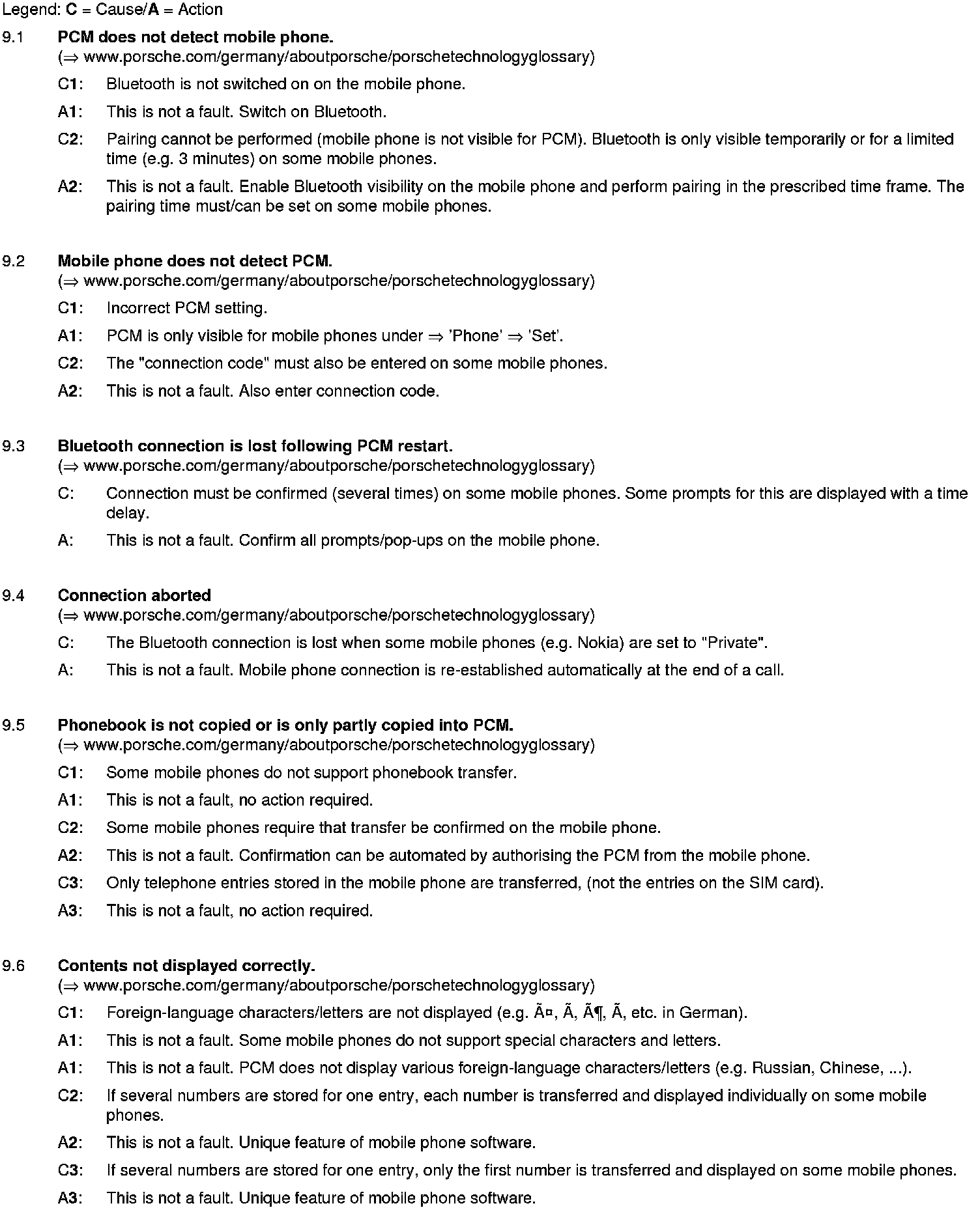 The list is sorted according to the system components and possible complaints. This is not a complete list of defects.