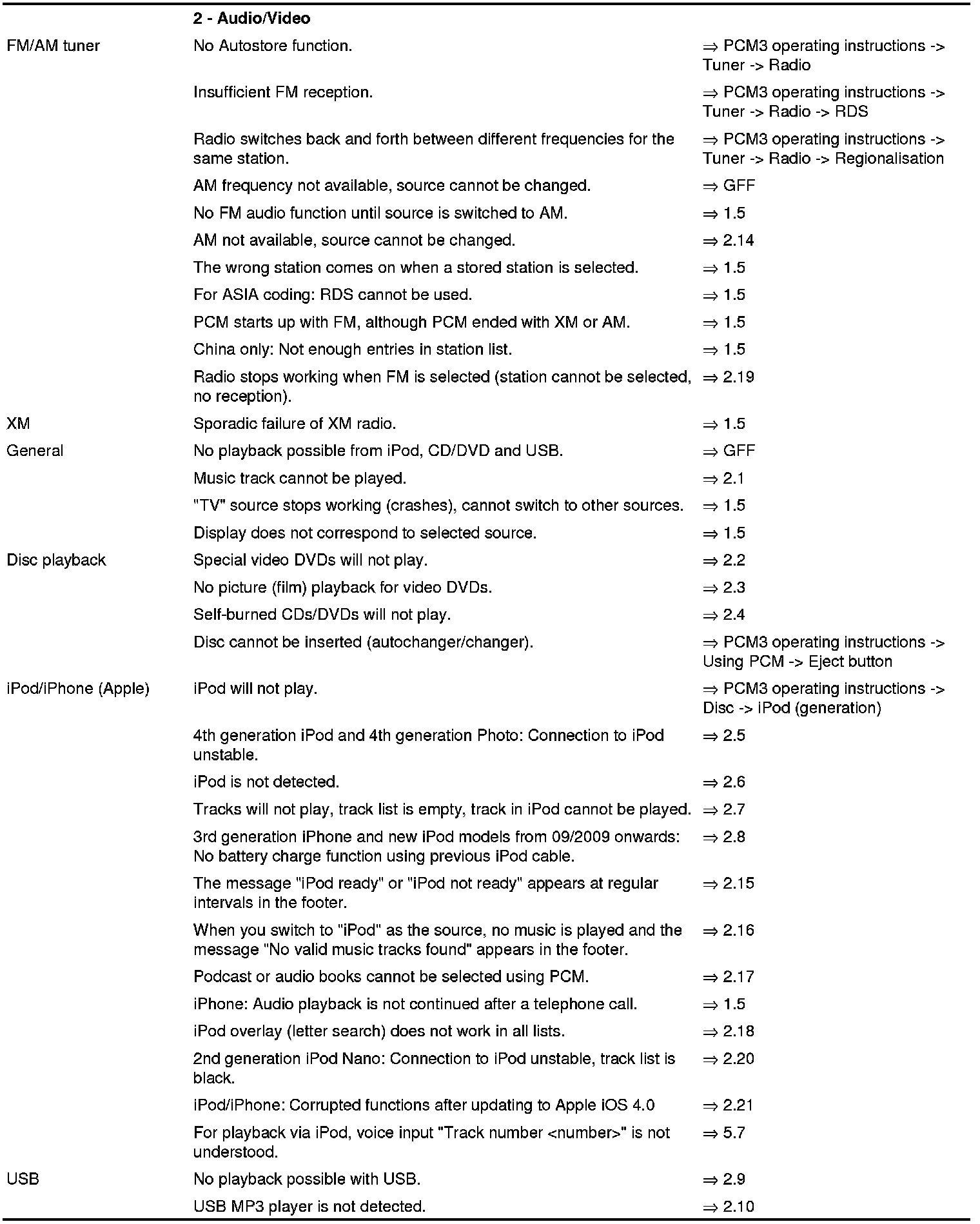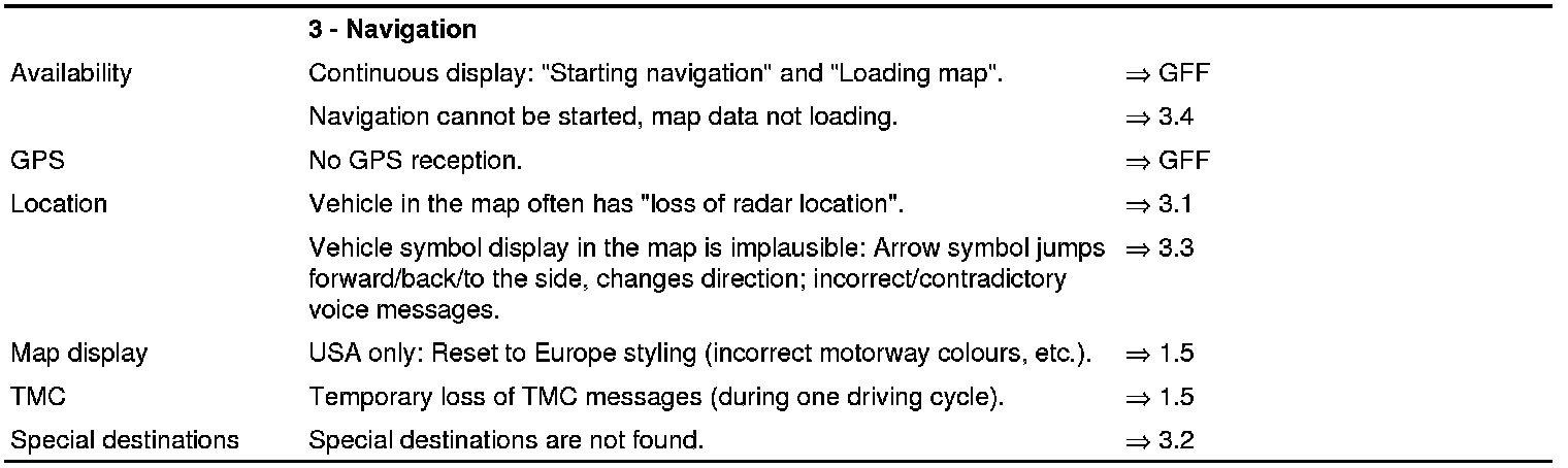 Furthermore, for information on remedial measures, also use the => 'Driver's Manual or PCM3 operating instructions '.
