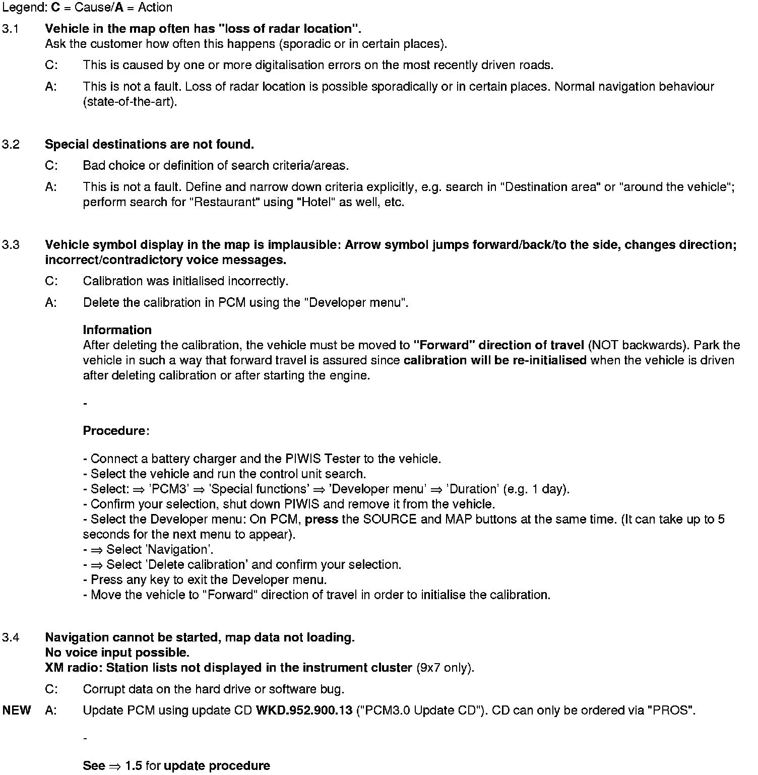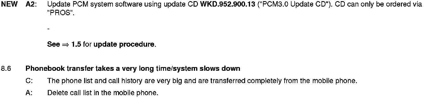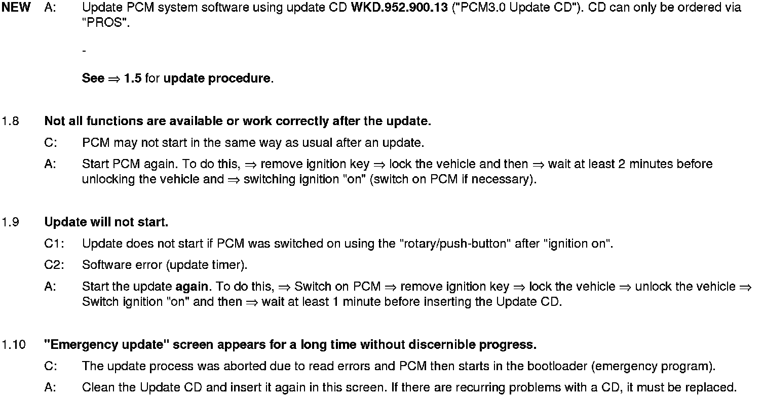 WM 911049 Eliminating symptoms in body interior: PCM3.0 integrated system: Complaints and repair instructions (SY01-08)