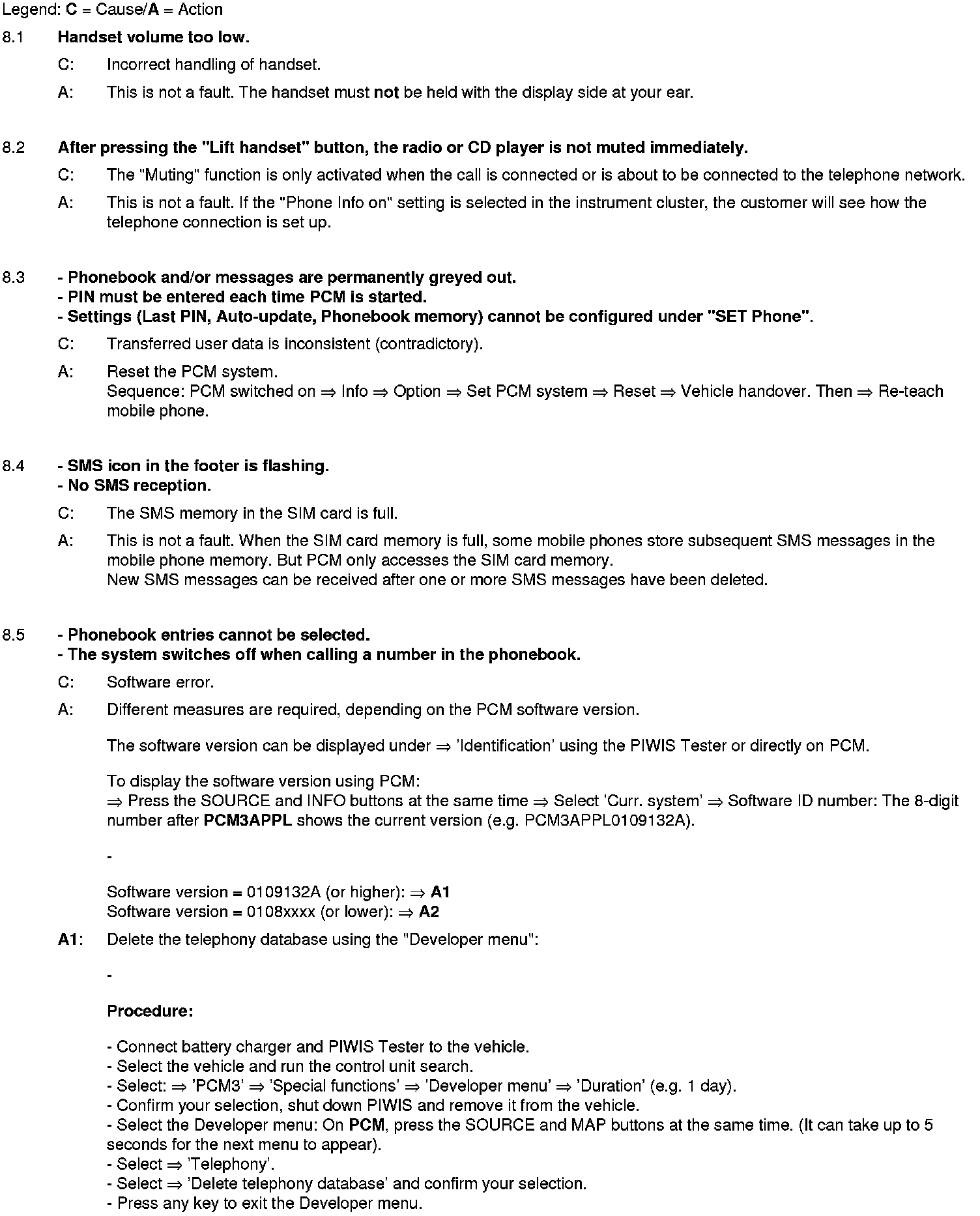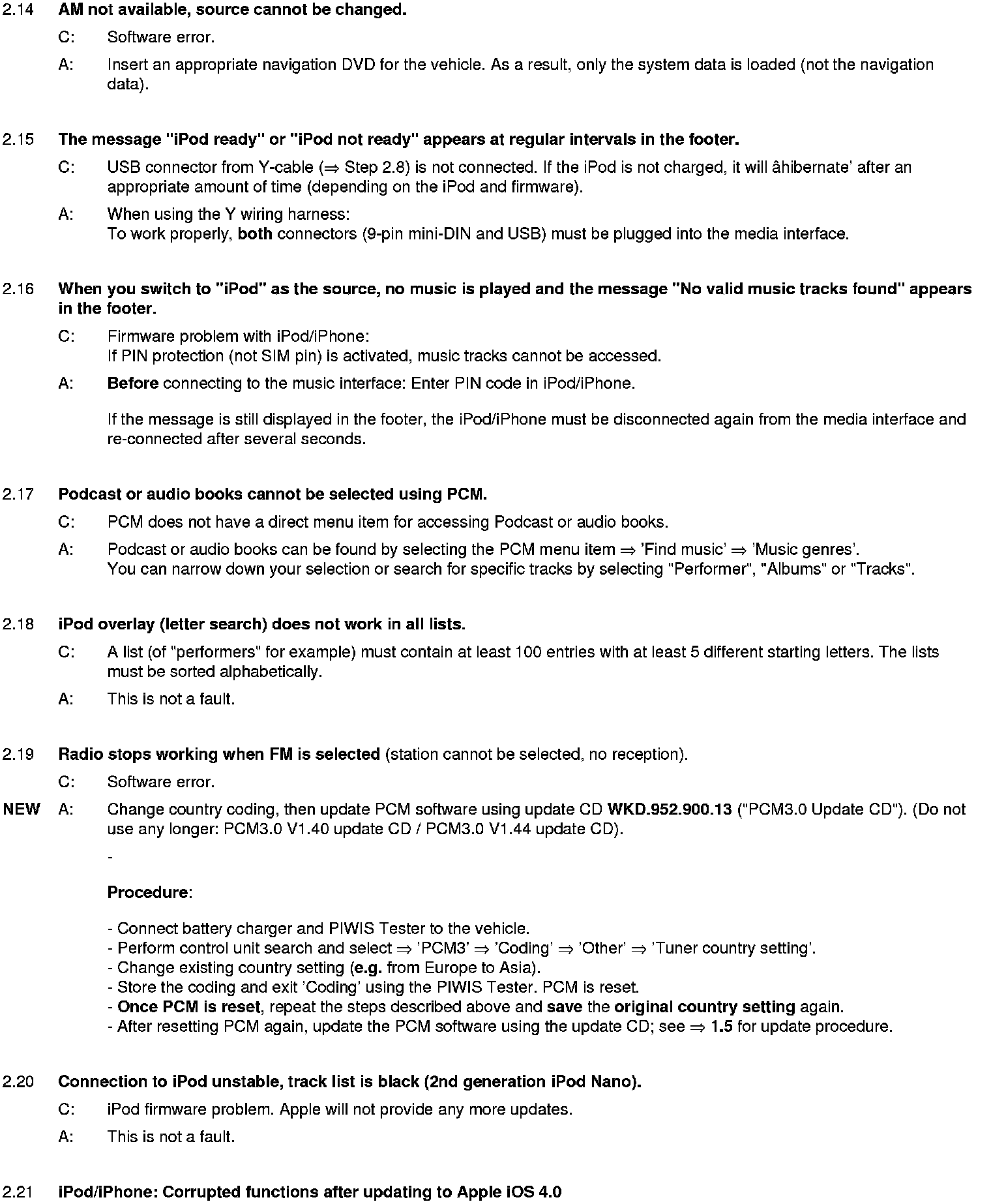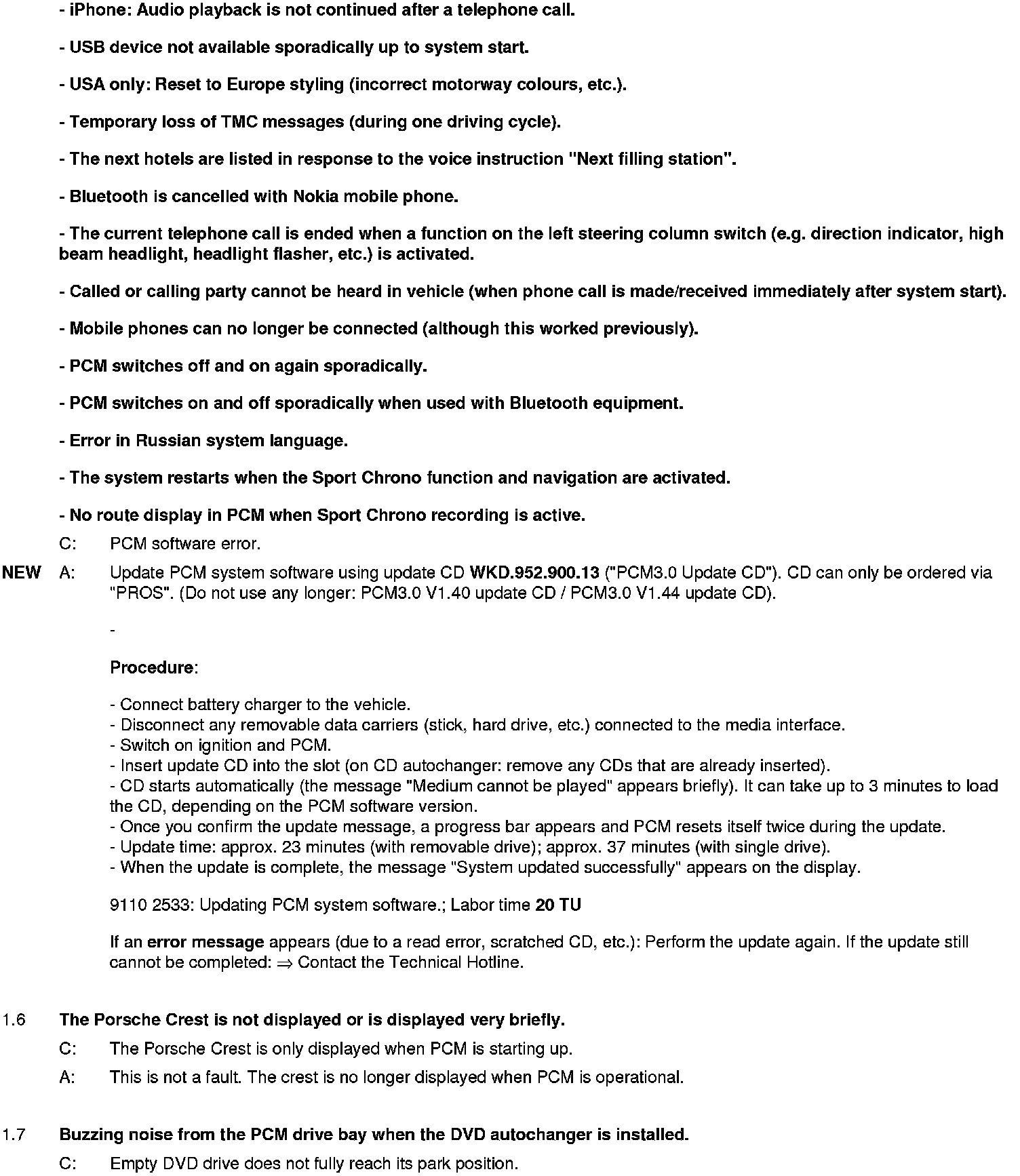 WM 911049 Eliminating symptoms in body interior: PCM3.0 integrated system: Complaints and repair instructions (SY01-08)