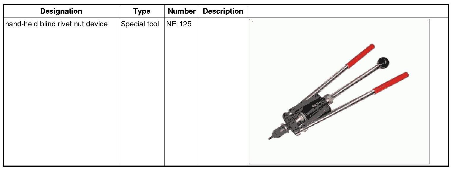 1.1. Insert rivet nuts in the bores and rivet with hand-held blind rivet nut device NR.125.