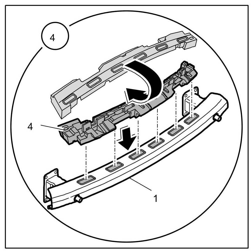 4.1. Place foam part -4- on the rear bumper -1- in line with the profile and press down firmly.