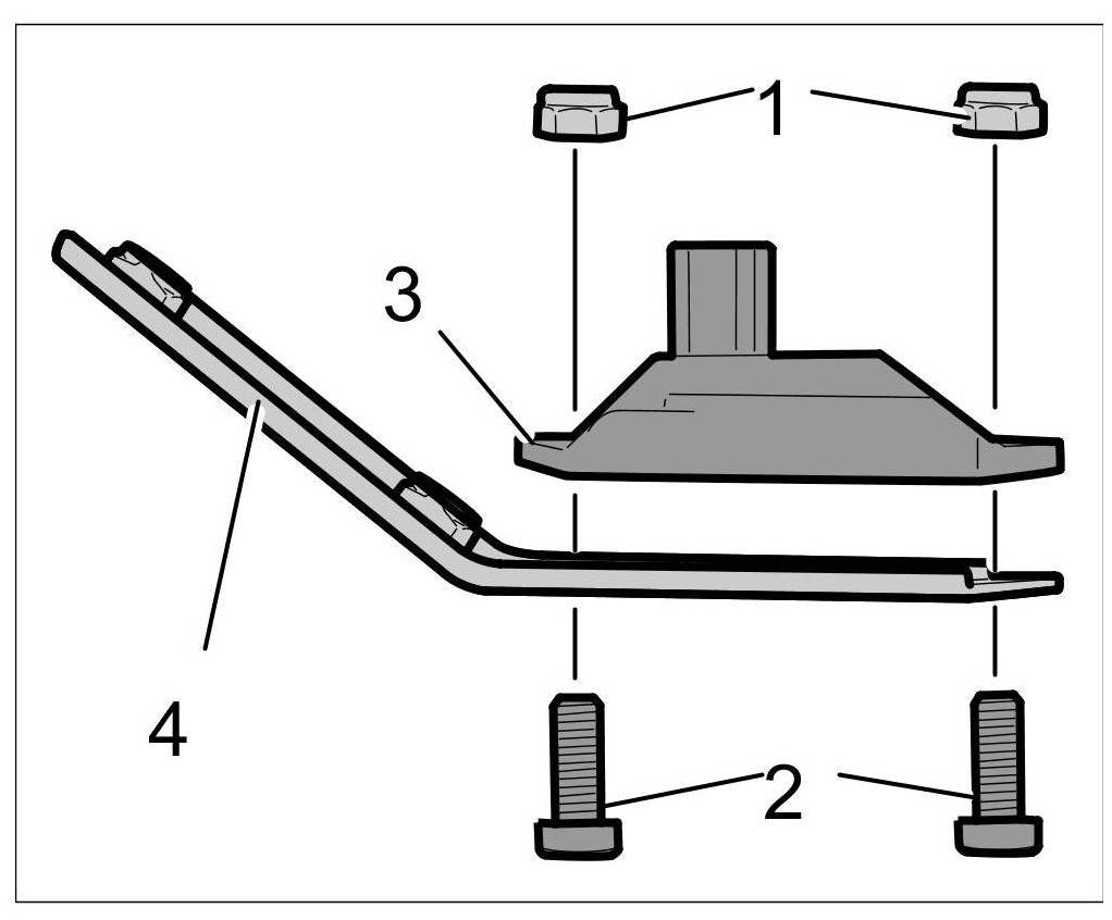 1. Position tilt sensor for rear lid -3- on the holder -4- and secure with the fastening screws -2- and fastening nuts -1-. => Tightening torque: 10 Nm (7.5 ftlb.)