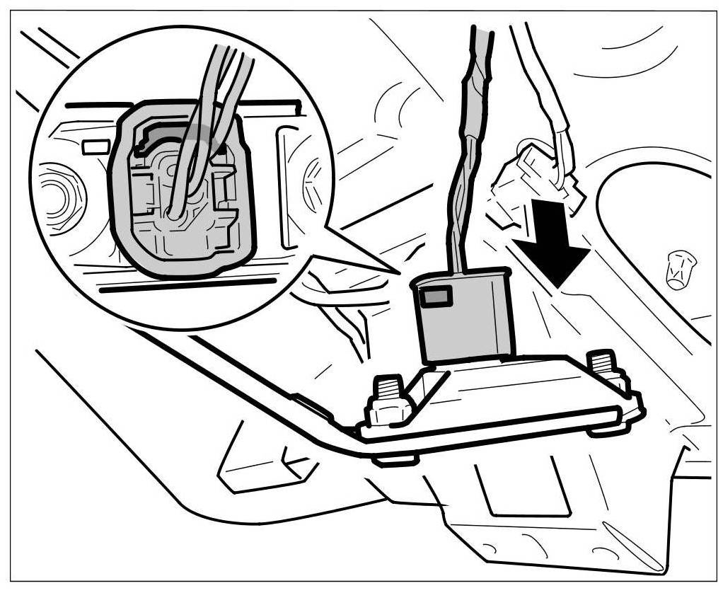 2. Plug in connector on tilt sensor for rear lid -arrow- until the connector engages securely.