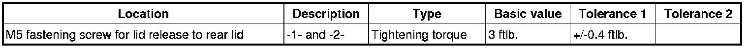 3. Screw in and tighten fastening screws -1 and 2-. => Tightening torque: 3 ftlb.+/-0.4 ftlb.