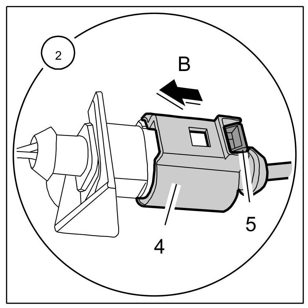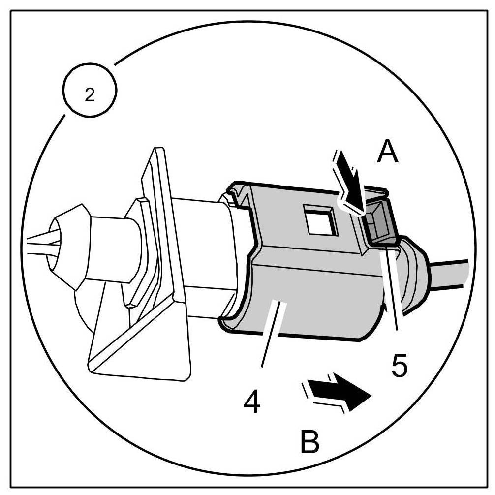 2. Release connector -4- on inside of lid at locking tab -5- -Arrow A- and pull it off -Arrow B-.