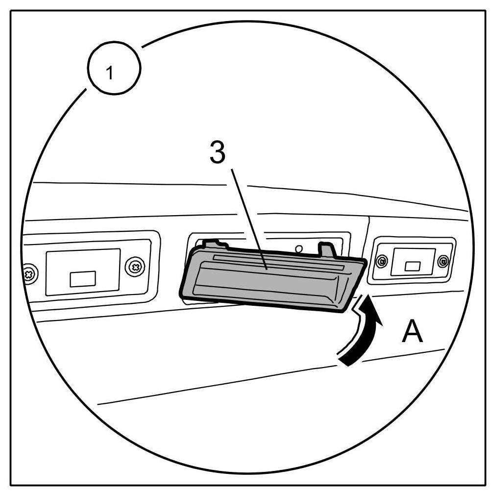 1. Undo the fastening screws -1 and 2- for the lid release -3- on the inside of the lid.