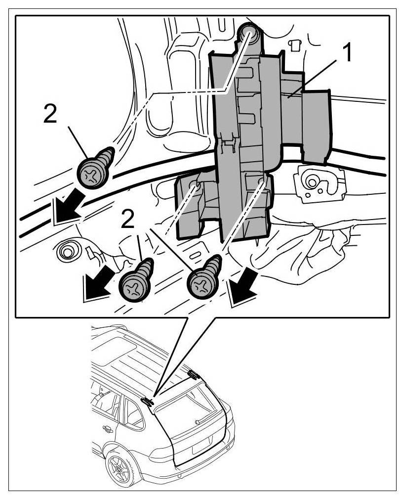- To allow easier access to the pneumatic spring housing, the roof trim panel must be loosened slightly at the back once the following parts have been removed.
