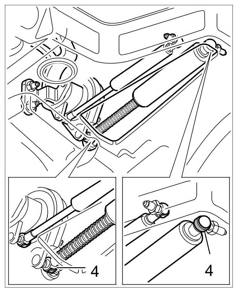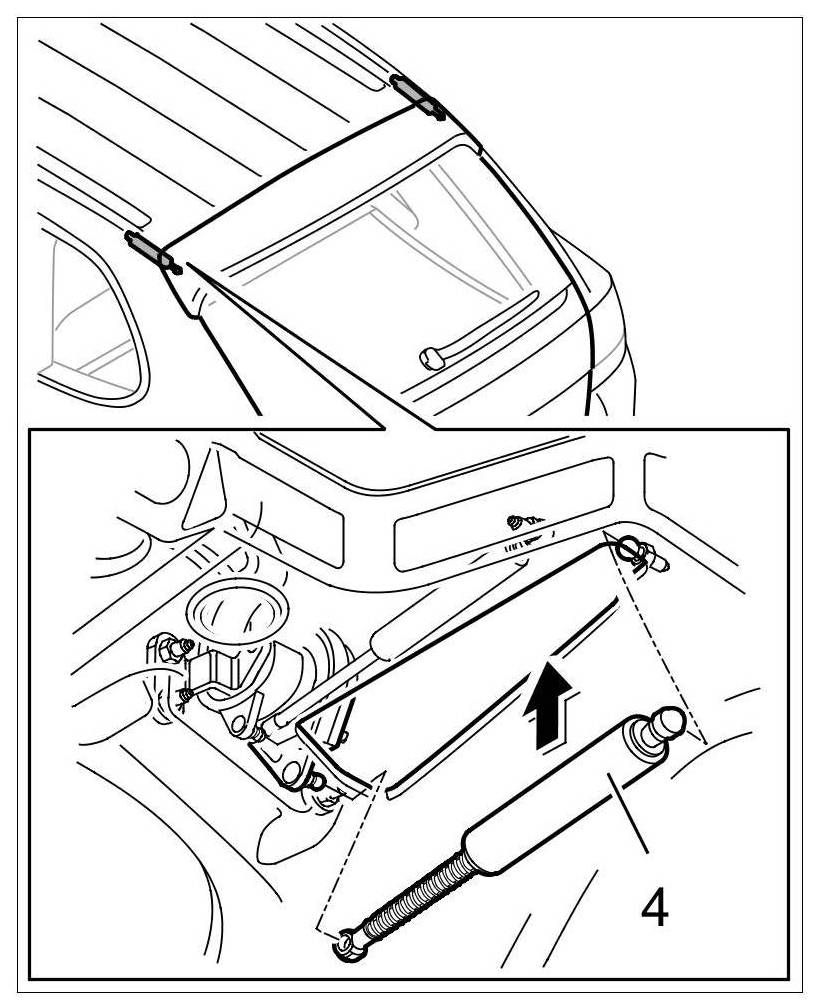 8. Pull the pneumatic spring for the rear lid -4- from the ball heads and remove.