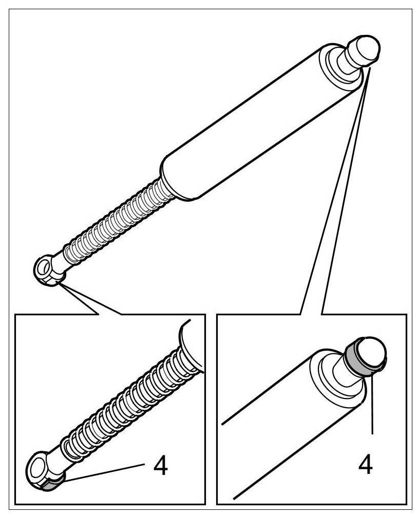 2. Position safety clips of pneumatic spring for rear lid -4- at ball sockets and snap into place.