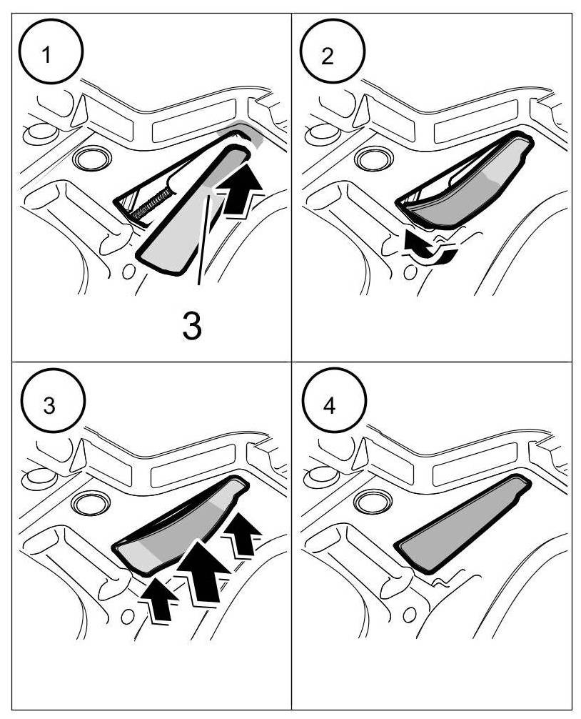 4.1. Position cover -3- at the front, bend out slightly and insert into the opening at the back.