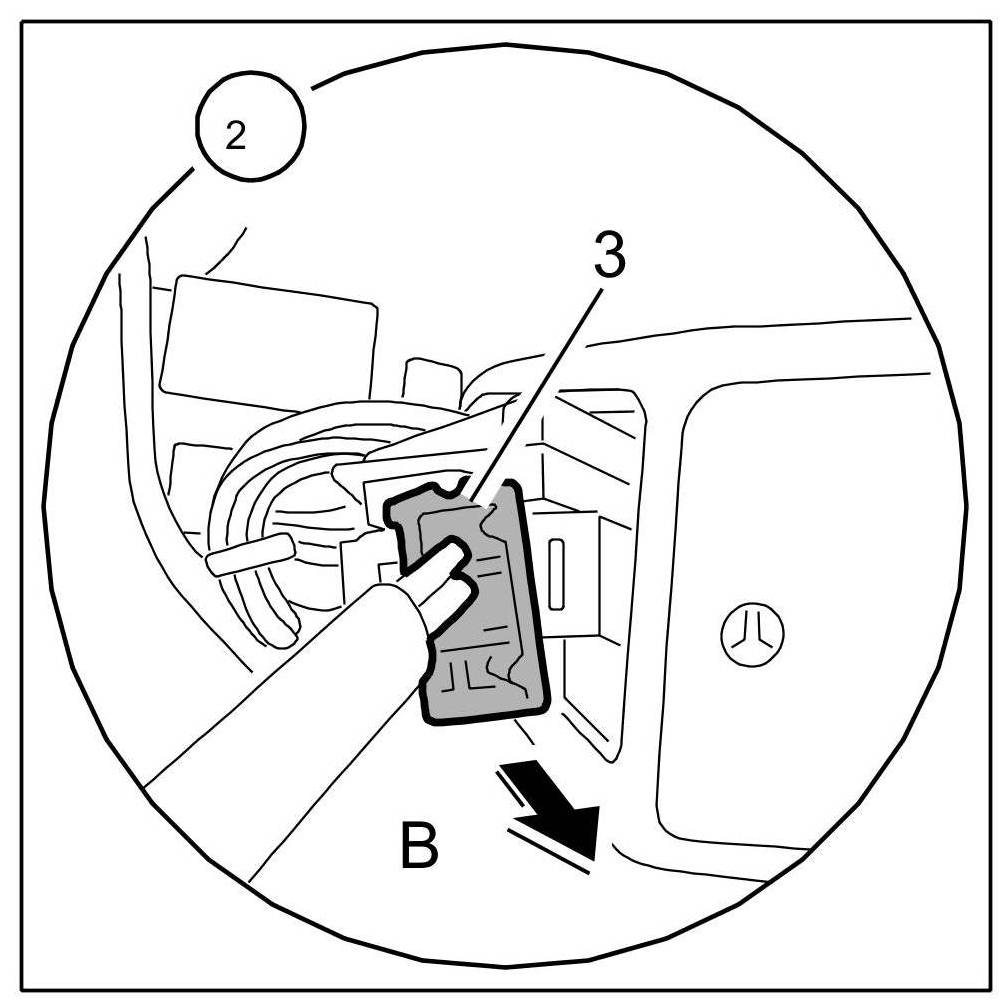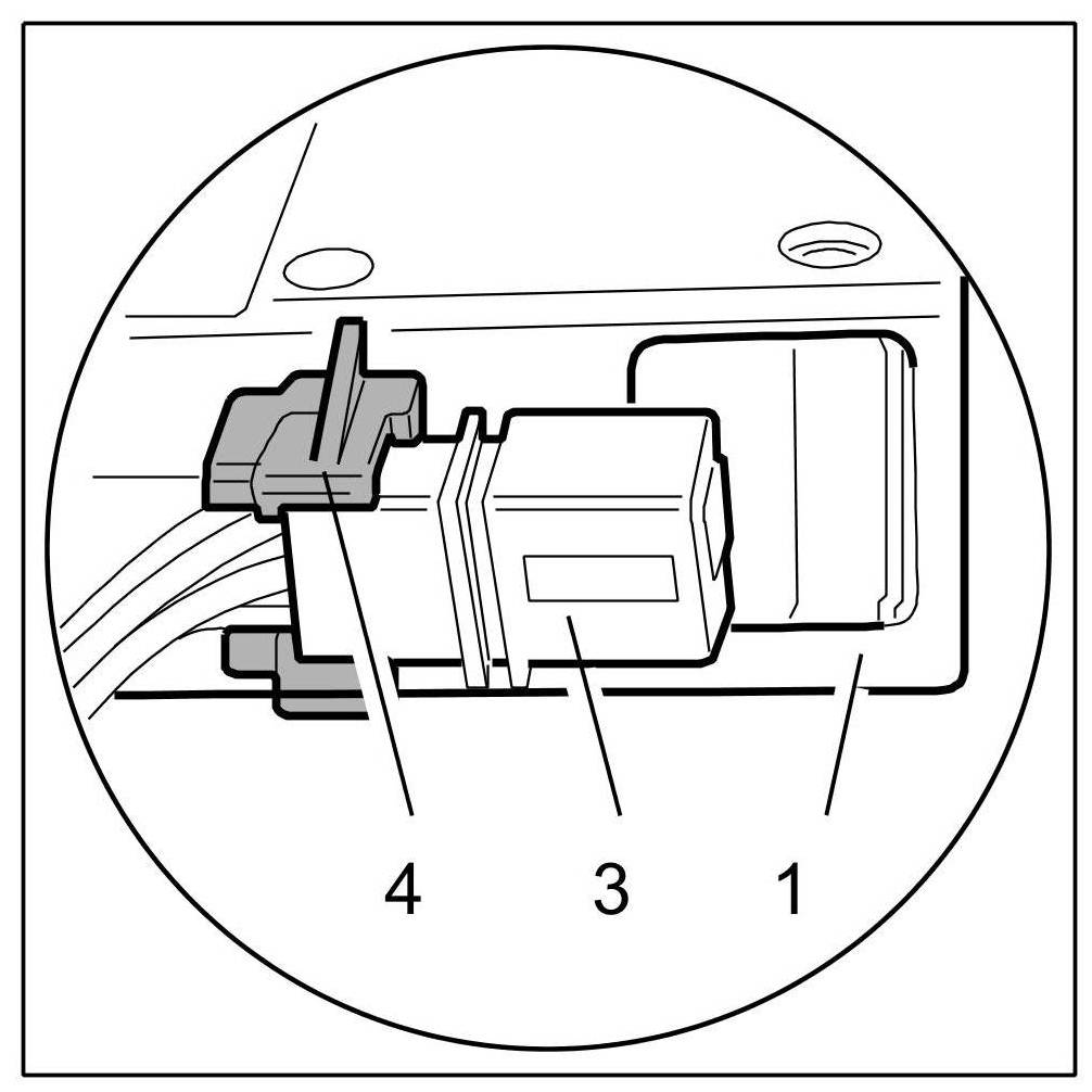4.1. Release -3- and pull off -Arrow B- plug.