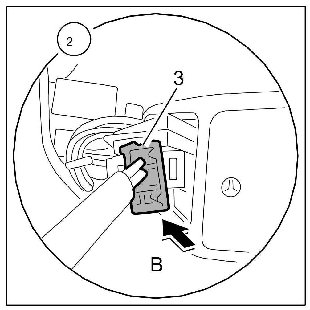 2.1. Push on the plug -3- until the locking tabs engage audibly -Arrow B-. When doing so, ensure that the plug -3- is positioned correctly in the mount -4- for the front ashtray -1-.