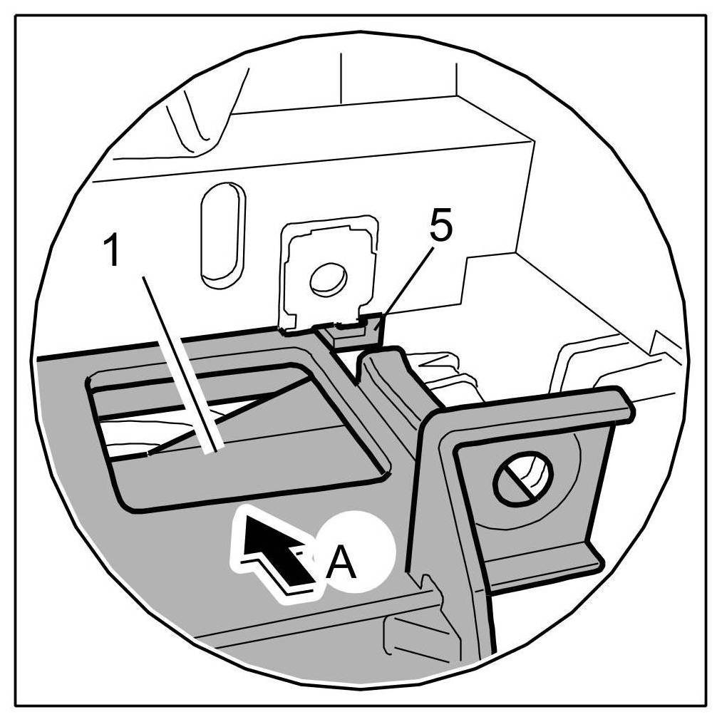 3.1. Insert front ashtray -1- into the guides -5- and push it in completely -arrow A-.
