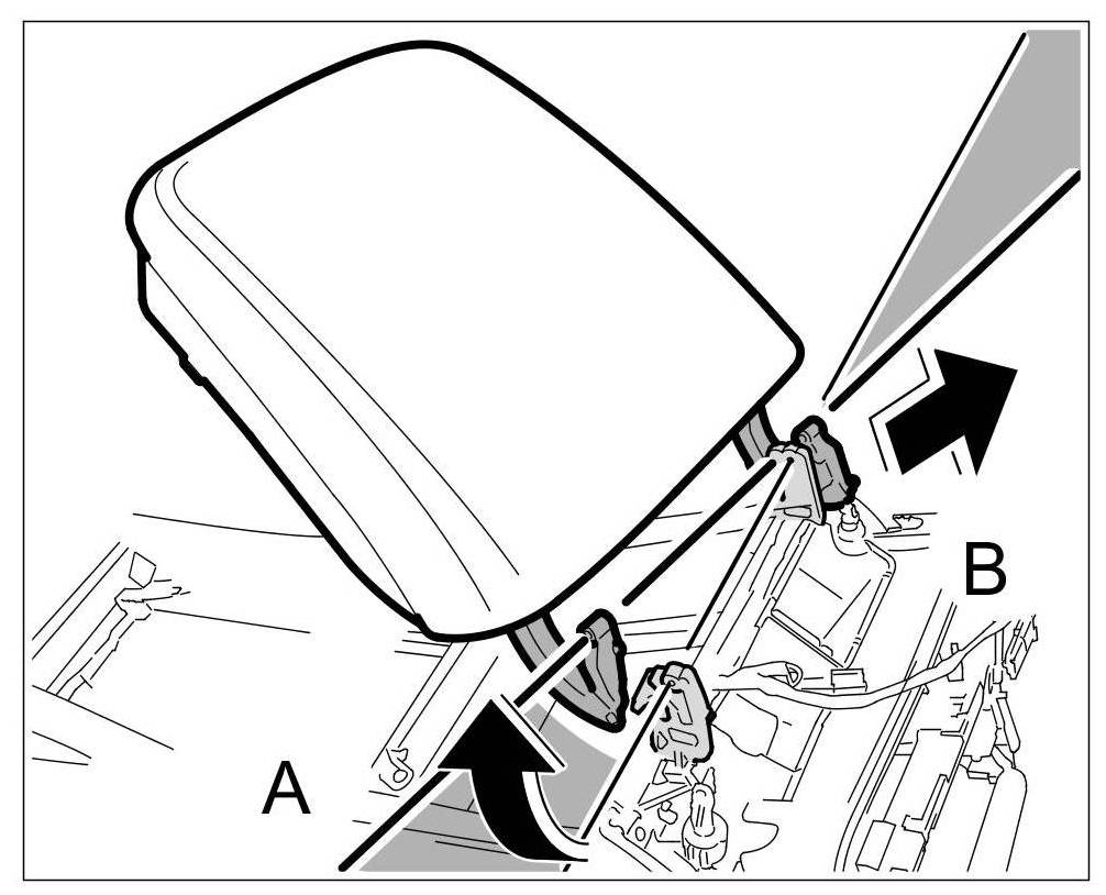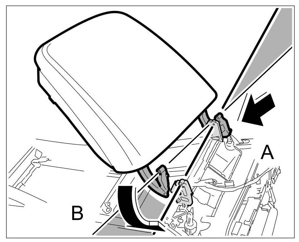 1.1. Tilt the pivot axis of the armrest -1- in the opposite direction to the pivot axis of the mount -2- ( -Arrow A- ).