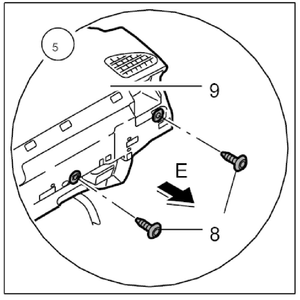 19. Carefully pull the instrument panel -9- to the rear -arrow E- until the clip connection in the area of the A-pillar becomes accessible.