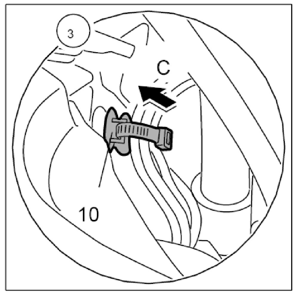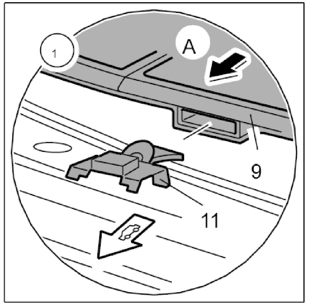 1. To do this, carefully insert the instrument panel -9- -arrow A- until the clip connection -10- can be clipped into place -arrow C-.